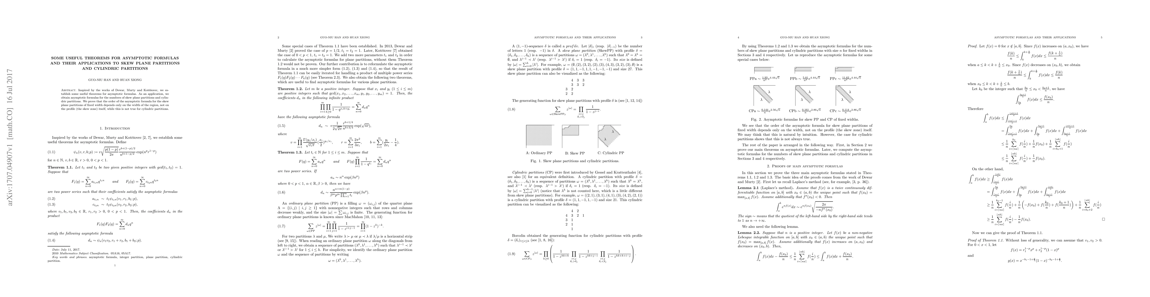 This paper establishes new theorems for asymptotic formulas, applying them to derive asymptotic expressions for skew plane partitions and cylindric partitions. Notably, it finds that the asymptotic formula for skew plane partitions depends solely on the width of the region, unlike cylindric partitions.