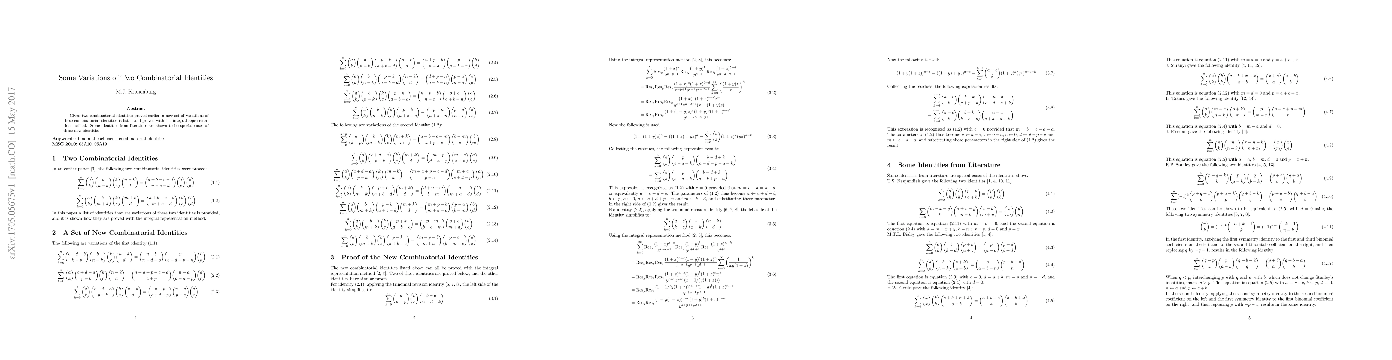 This paper introduces new variations of combinatorial identities using an integral representation method, expanding previous research with novel proofs.