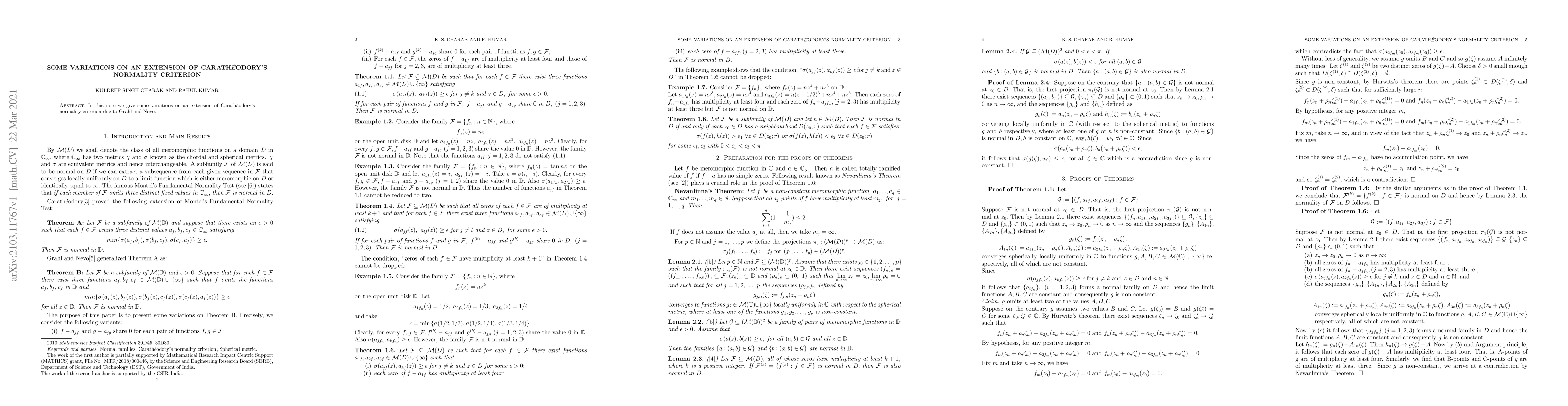 In this note we give some variations on an extension of Caratheodory's normality criterion due to Grahl and Nevo.