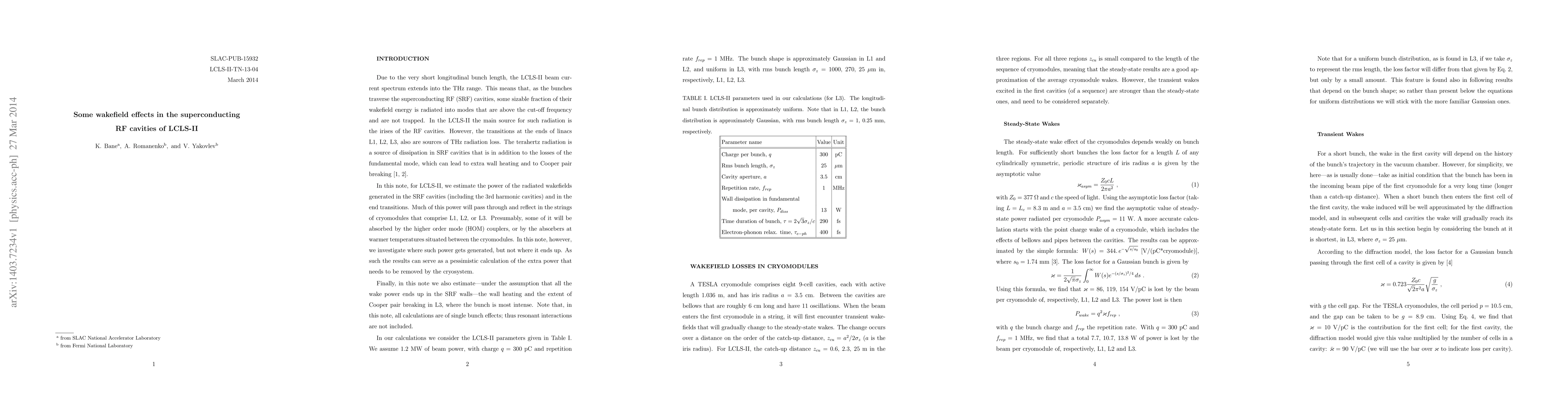 For LCLS-II we estimate the power of radiated wakefields generated in the SRF cavities (including the 3rd harmonic cavities) and in the end transitions. Much of this power will pass through and reflect in the strings of cryomodules that comprise linacs L1, L2, or L3. Presumably, some of it will be absorbed by the higher order mode (HOM) couplers, or by the absorbers at warmer temperatures situated between the cryomodules. We investigate where such power gets generated, but not where it ends up. As such the results can serve as a pessimistic calculation of the extra power that needs to be removed by the cryosystem. Finally, we also estimate---under the assumption that all the wake power ends up in the SRF walls---the wall heating and the extent of Cooper pair breaking in L3, where the bunch is most intense. Note that all calculations here are of single bunch effects; thus resonant interactions are not included.