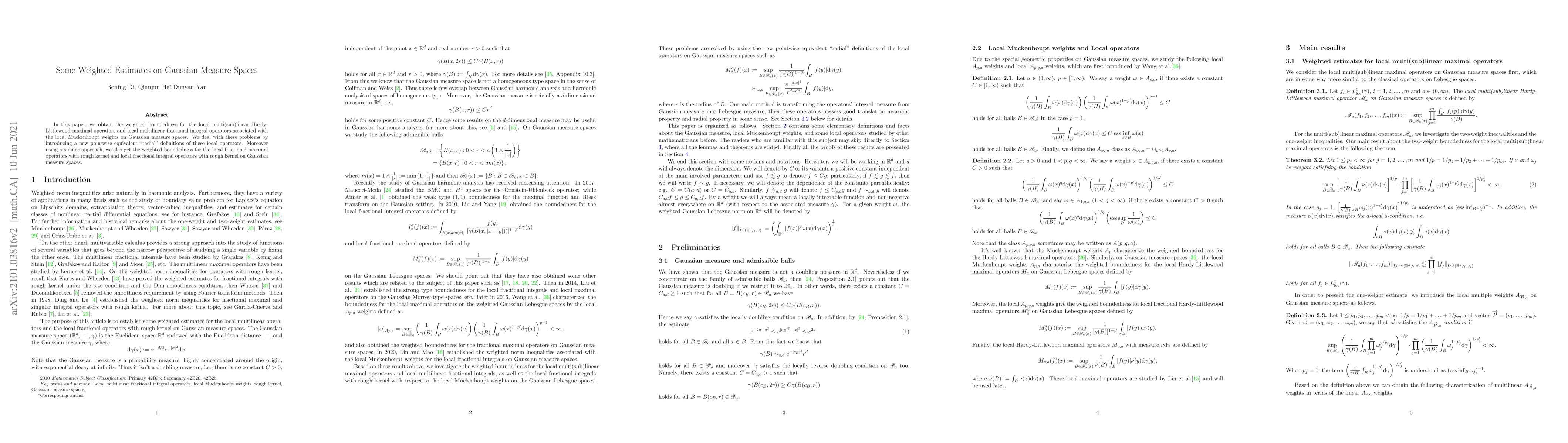 This paper establishes weighted boundedness for local multi(sub)linear maximal operators and fractional integral operators on Gaussian measure spaces, utilizing new "radial" definitions and extending the results to operators with rough kernels. The study focuses on local Muckenhoupt weights and introduces innovative pointwise equivalent definitions for these operators.