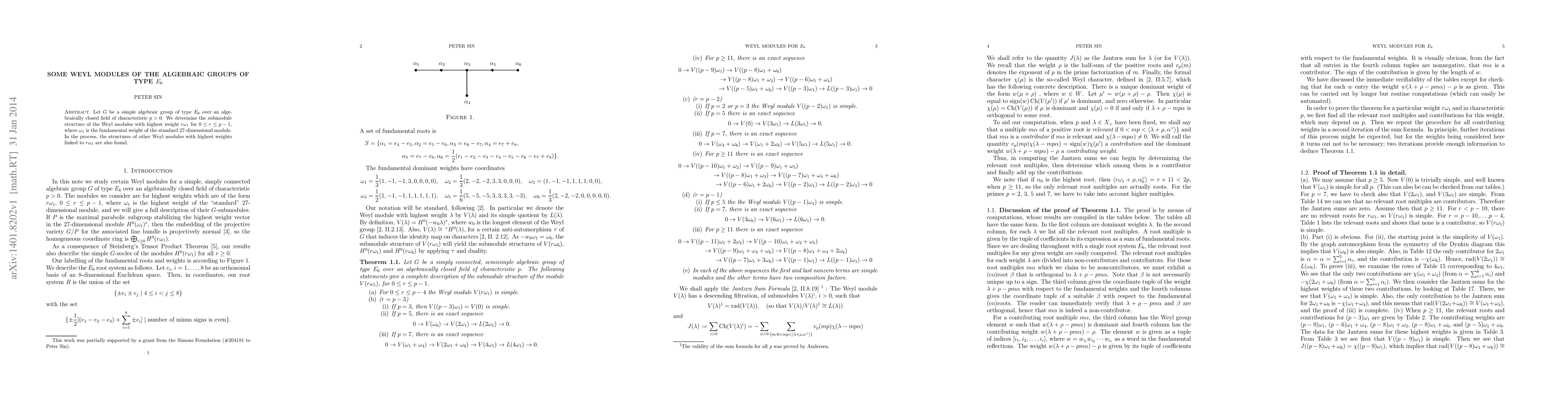 Let $G$ be a simple algebraic group of type $E_6$ over an algebraically closed field of characteristic $p>0$. We determine the submodule structure of the Weyl modul es with highest weight $r\omega_1$ for $0\leq r\leq p-1$, where $\omega_1$ is the fundamental weight of the standard $27$-dimensional module. In the process, the structures of other Weyl modules with highest weights linked to $r\omega_1$ are also found. %We also give some computations for the Weyl modules with highest weights %of the form $r(\omega_1+\omega_6)$, which arise in the study of %the graph automorphism and associated twisted finite groups.