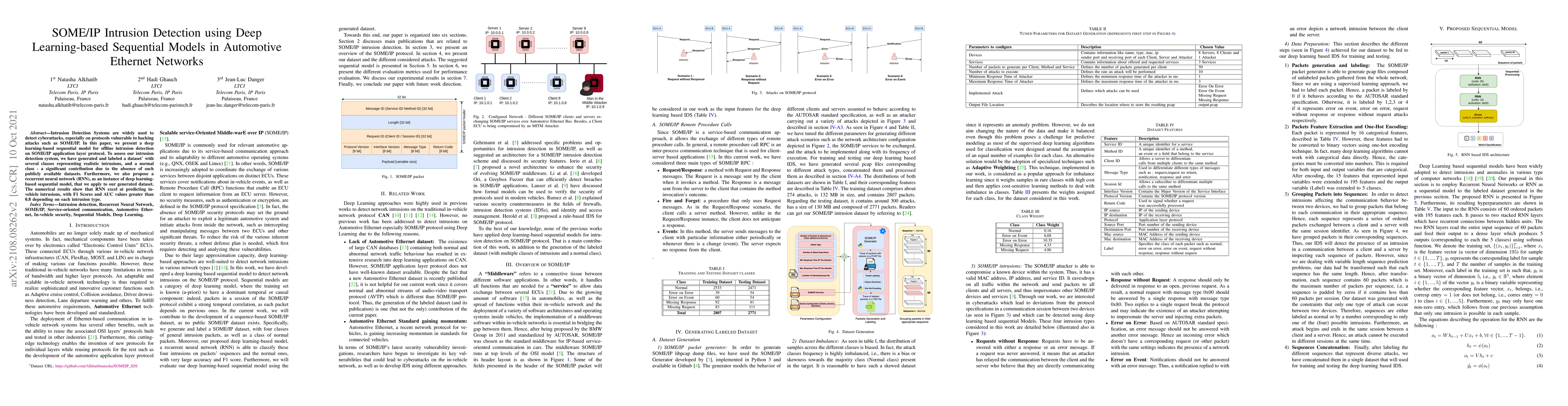 This paper proposes a deep learning-based sequential model using a recurrent neural network (RNN) for offline intrusion detection in automotive Ethernet networks using the SOME/IP protocol. The authors generated a labeled dataset for realistic intrusions and normal traffic, demonstrating the RNN's effectiveness with high F1 Scores and AUC values.