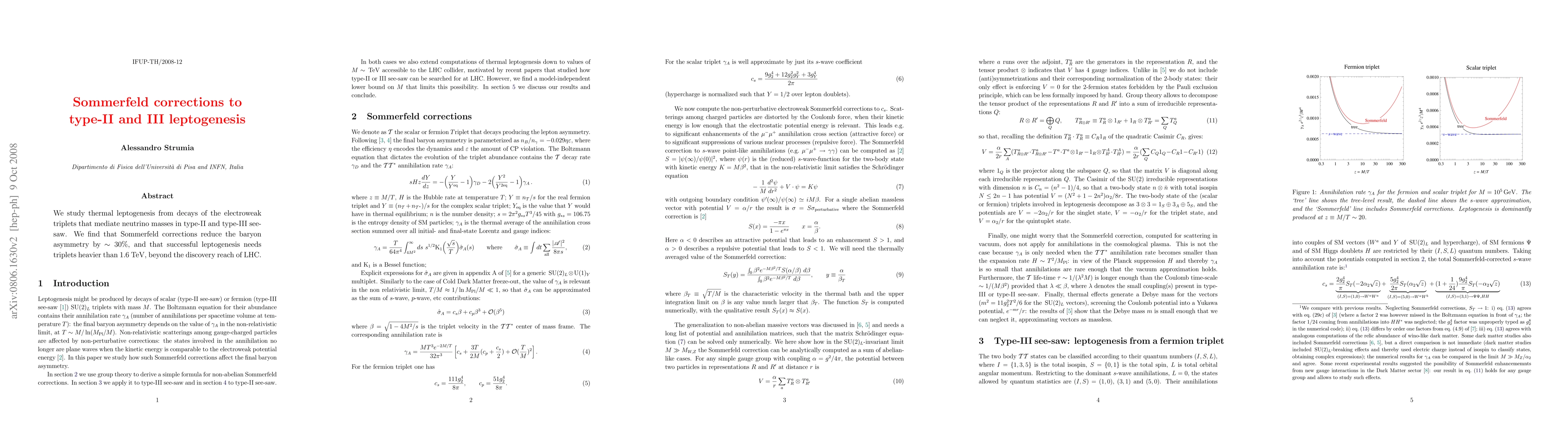 This paper investigates the impact of Sommerfeld corrections on thermal leptogenesis in type-II and III see-saw models, finding that these corrections reduce the predicted baryon asymmetry by ~30%, necessitating triplets heavier than 1.6 TeV for successful leptogenesis, beyond the current LHC reach.