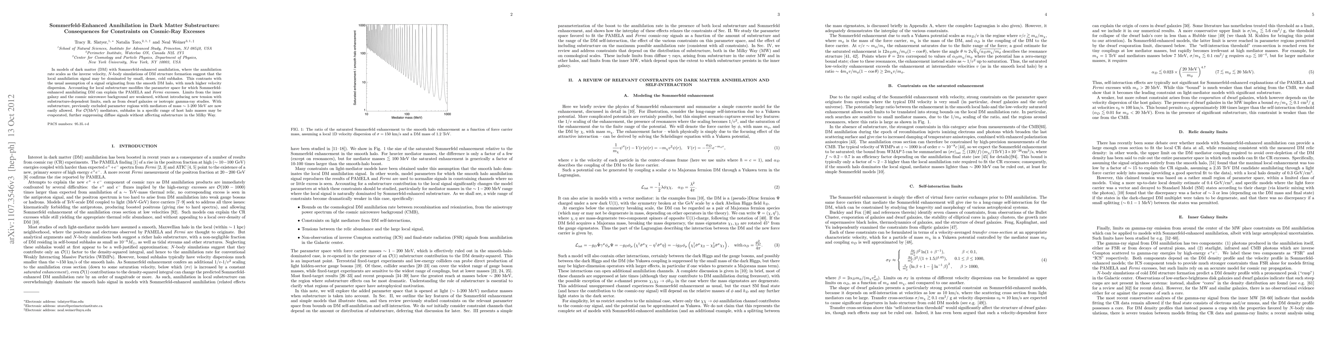 This paper explores how Sommerfeld-enhanced annihilation in dark matter substructures alters constraints on cosmic-ray excesses, finding that small, dense subhalos dominate local annihilation signals, which modifies the parameter space for explaining observed excesses. The presence of substructures weakens limits from the inner galaxy and cosmic microwave background, allowing previously excluded parameter regions for mediators of mass ~1-200 MeV.