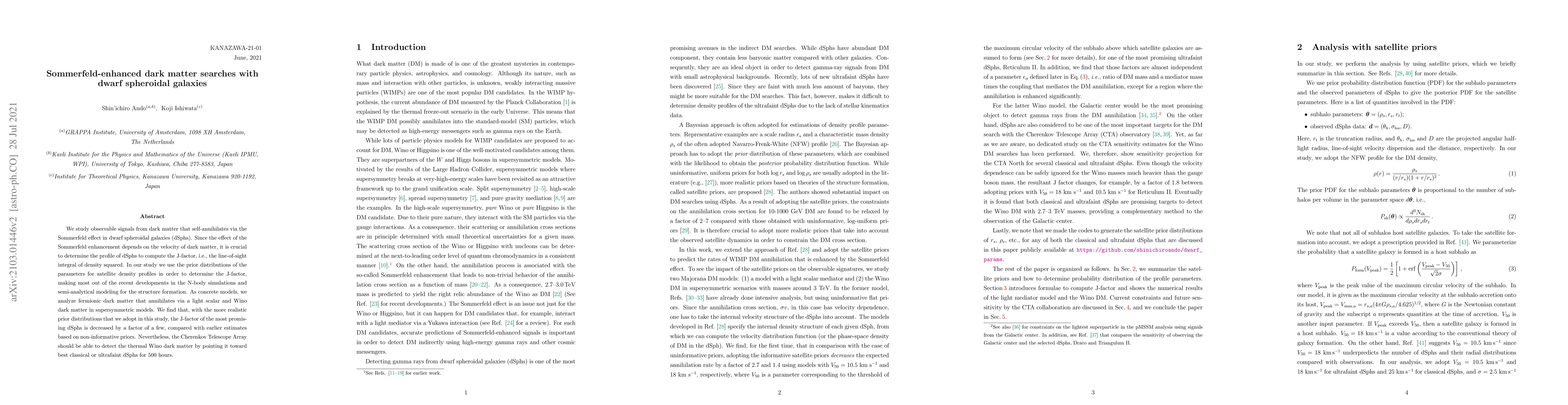 We study observable signals from dark matter that self-annihilates via the Sommerfeld effect in dwarf spheroidal galaxies (dSphs). Since the effect of the Sommerfeld enhancement depends on the velocity of dark matter, it is crucial to determine the profile of dSphs to compute the J-factor, i.e., the line-of-sight integral of density squared. In our study we use the prior distributions of the parameters for satellite density profiles in order to determine the J-factor, making most out of the recent developments in the N-body simulations and semi-analytical modeling for the structure formation. As concrete models, we analyze fermionic dark matter that annihilates via a light scalar and Wino dark matter in supersymmetric models. We find that, with the more realistic prior distributions that we adopt in this study, the J-factor of the most promising dSphs is decreased by a factor of a few, compared with earlier estimates based on non-informative priors. Nevertheless, the Cherenkov Telescope Array should be able to detect the thermal Wino dark matter by pointing it toward best classical or ultrafaint dSphs for 500 hours.