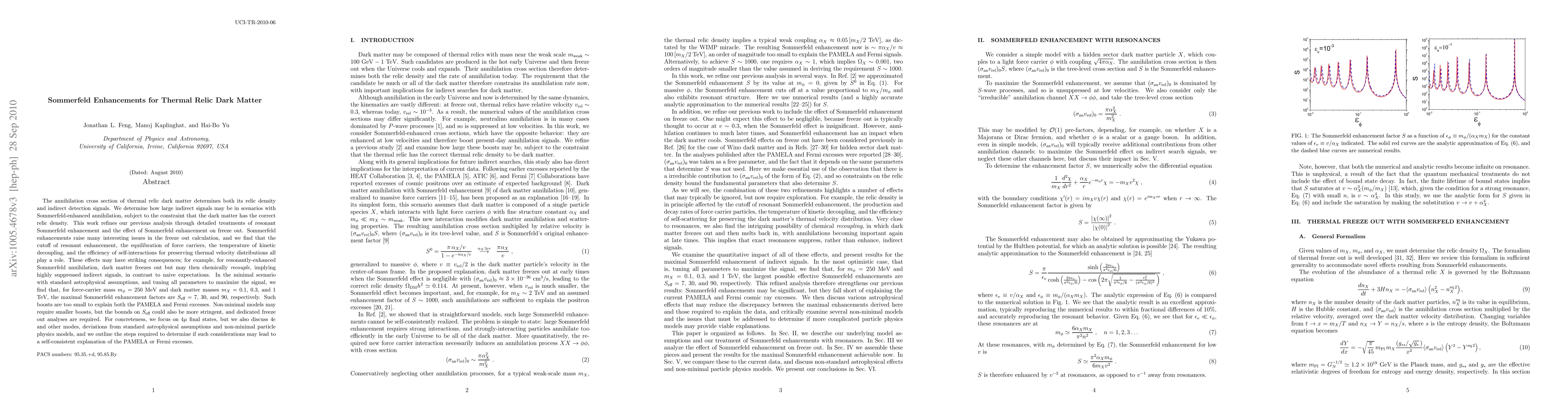 This paper investigates the impact of Sommerfeld enhancements on the annihilation cross section of thermal relic dark matter, refining previous analyses to explore resonant effects and their influence on freeze-out processes. It finds that while significant enhancements can occur, they are insufficient to explain observed cosmic ray excesses, suggesting that non-minimal models or stricter bounds may be needed.