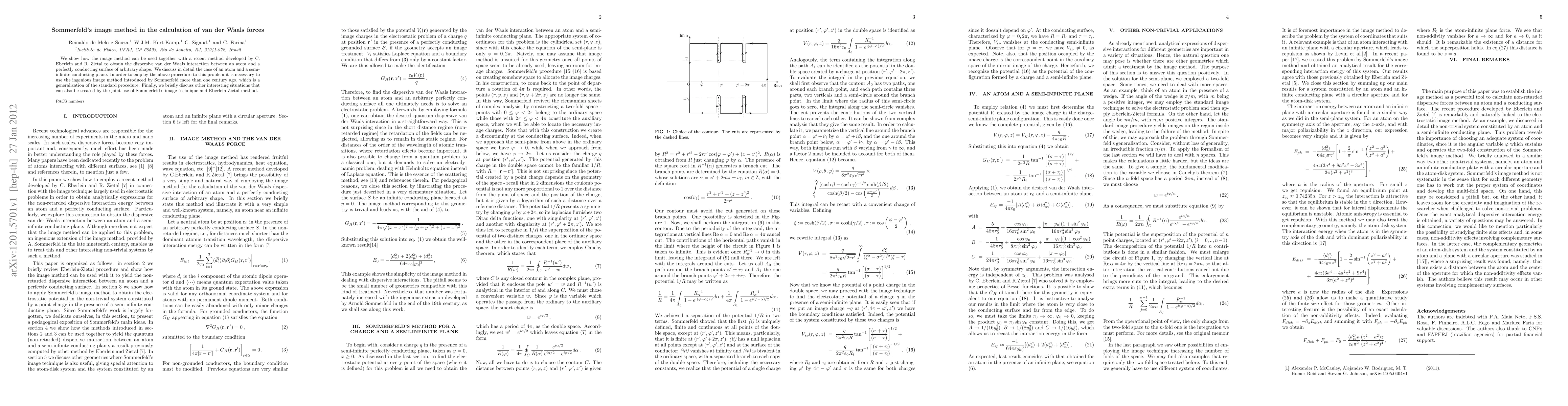 This paper demonstrates the application of Sommerfeld's image method combined with Eberlein-Zietal's recent technique to calculate dispersive van der Waals forces between an atom and a perfectly conducting surface of any shape, focusing on the case of a semi-infinite conducting plane. It also explores other scenarios treatable by this combined approach.