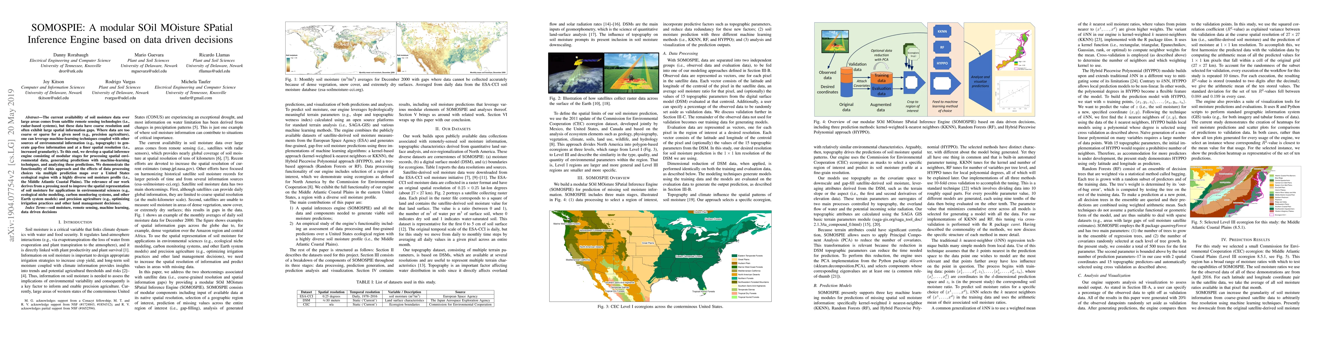 The paper introduces SOMOSPIE, a modular spatial inference engine for generating fine-resolution soil moisture predictions using machine learning and environmental data. It aims to address the limitations of coarse satellite data by filling spatial gaps and improving soil moisture representation for applications in environmental sciences and precision agriculture.