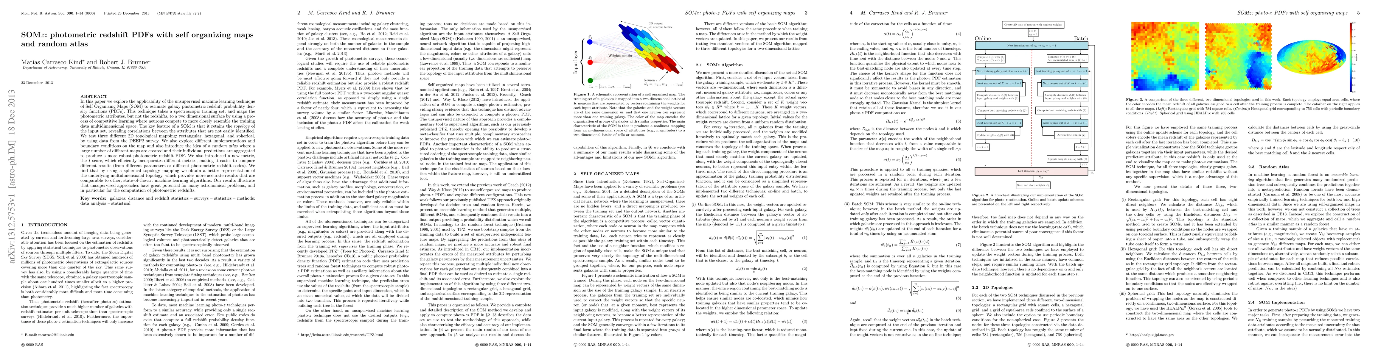 This paper investigates the use of Self Organizing Maps (SOM) for estimating galaxy photometric redshift PDFs, finding that a spherical topology provides more accurate results compared to rectangular and hexagonal maps. The study introduces a random atlas approach and a new metric, $I$-score, to improve robustness and comparison across different methods.