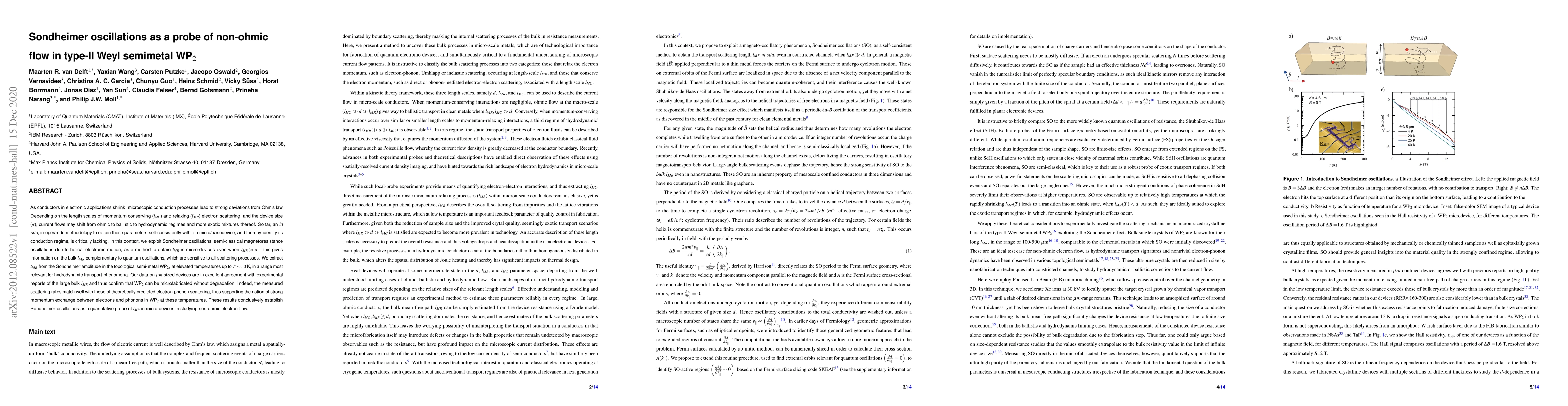 As conductors in electronic applications shrink, microscopic conduction processes lead to strong deviations from Ohm's law. Depending on the length scales of momentum conserving ($l_{MC}$) and relaxing ($l_{MR}$) electron scattering, and the device size ($d$), current flows may shift from ohmic to ballistic to hydrodynamic regimes and more exotic mixtures thereof. So far, an in situ, in-operando methodology to obtain these parameters self-consistently within a micro/nanodevice, and thereby identify its conduction regime, is critically lacking. In this context, we exploit Sondheimer oscillations, semi-classical magnetoresistance oscillations due to helical electronic motion, as a method to obtain $l_{MR}$ in micro-devices even when $l_{MR}\gg d$. This gives information on the bulk $l_{MR}$ complementary to quantum oscillations, which are sensitive to all scattering processes. We extract $l_{MR}$ from the Sondheimer amplitude in the topological semi-metal WP$_2$, at elevated temperatures up to $T\sim 50$~K, in a range most relevant for hydrodynamic transport phenomena. Our data on micrometer-sized devices are in excellent agreement with experimental reports of the large bulk $l_{MR}$ and thus confirm that WP$_2$ can be microfabricated without degradation. Indeed, the measured scattering rates match well with those of theoretically predicted electron-phonon scattering, thus supporting the notion of strong momentum exchange between electrons and phonons in WP$_2$ at these temperatures. These results conclusively establish Sondheimer oscillations as a quantitative probe of $l_{MR}$ in micro-devices in studying non-ohmic electron flow.