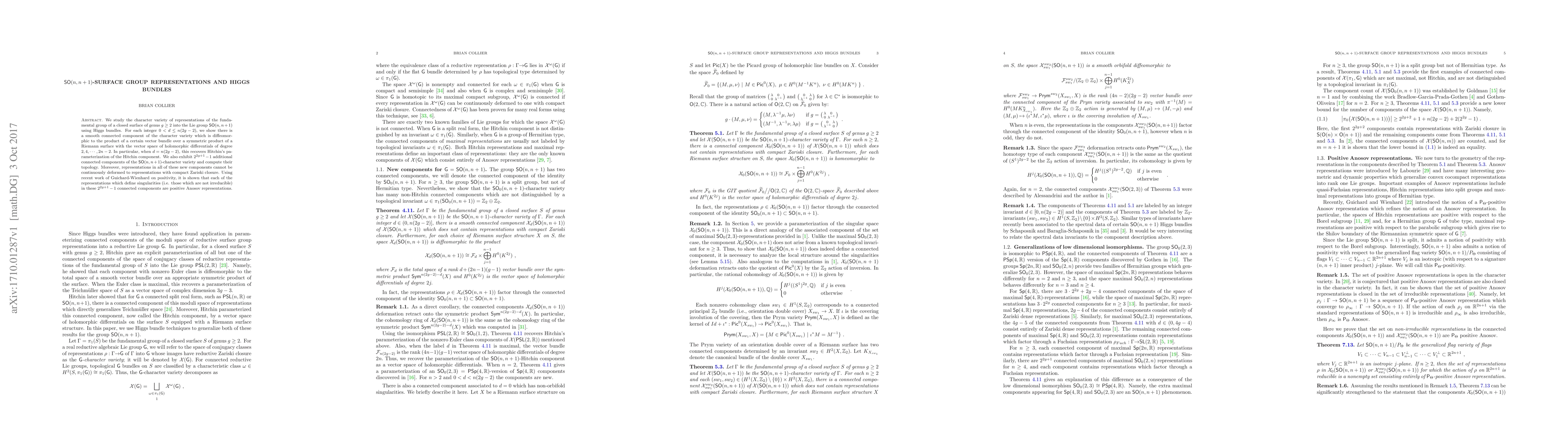 a closed surface of genus $g\geq2$ into the Lie group SO(n,n+1) using Higgs