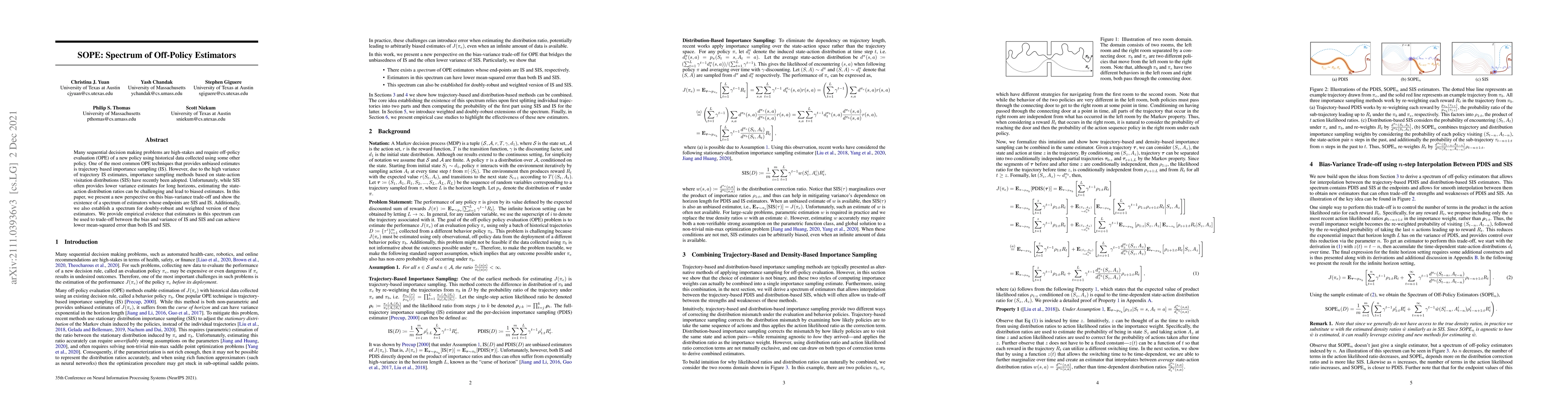 This paper introduces a spectrum of off-policy estimators (SOPE) that bridges the bias-variance trade-off between importance sampling (IS) and state-action visitation distribution sampling (SIS). It demonstrates that these estimators can achieve lower mean-squared error than either IS or SIS by trading off bias and variance.