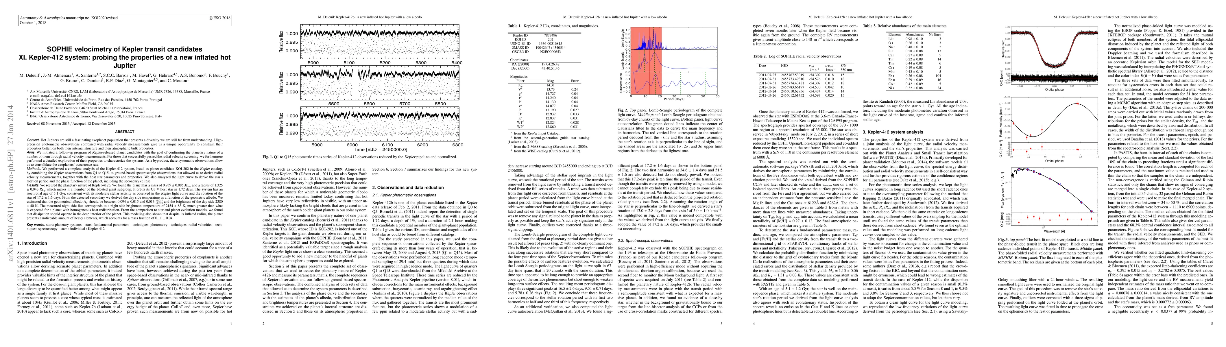 This study confirms the planetary nature of Kepler-412b using SOPHIE velocimetry and combines Kepler and spectroscopic data to analyze its properties. The planet, with a mass of 0.939 M$_{Jup}$ and a radius of 1.325 R$_{Jup}$, orbits its G3 V star in 1.72 days, exhibiting significant inflation and a high night side brightness temperature, suggesting deep interior dissipation and a substantial heavy element mass fraction.