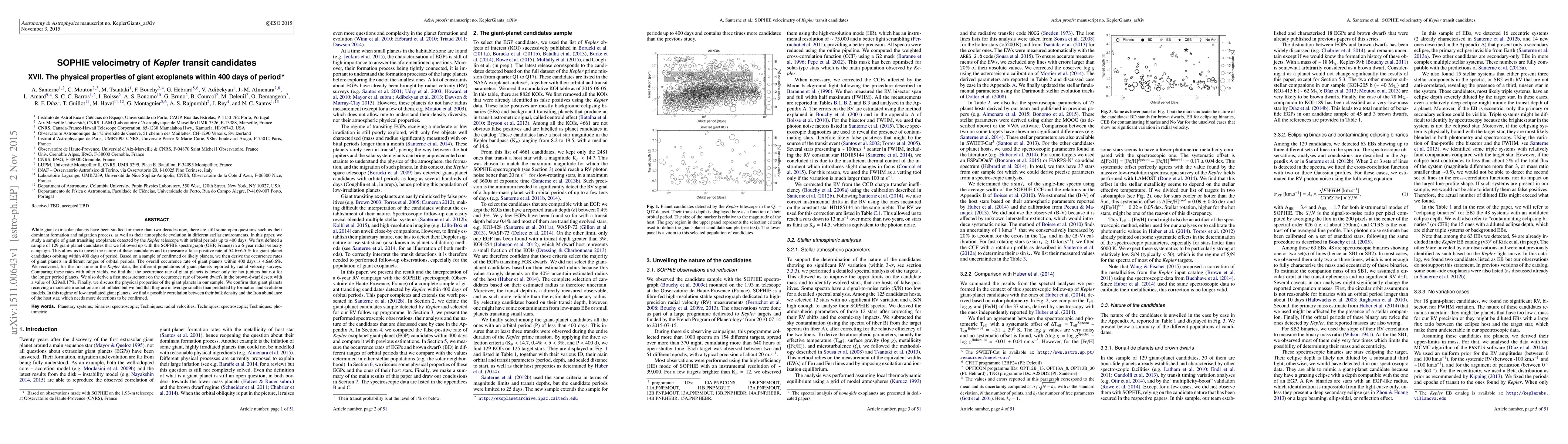This paper investigates the physical properties and occurrence rates of giant exoplanets with orbital periods up to 400 days using SOPHIE velocimetry. The study confirms 129 giant-planet candidates, revealing a false-positive rate of 54.6% and an overall occurrence rate of 4.6% for giant planets within this period range, highlighting discrepancies between Kepler and radial velocity survey findings.
