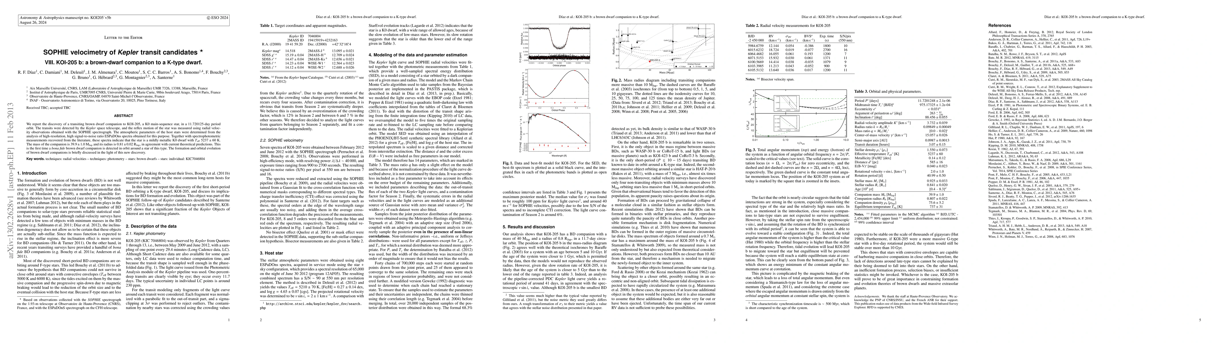 The paper reports the discovery of a transiting brown dwarf, KOI-205 b, orbiting a K0 main-sequence star, KOI-205, with a period of 11.72 days. The brown dwarf has a mass of 39.9 MJup and a radius of 0.81 RJup, marking the first detection of such a companion around a star of this type.