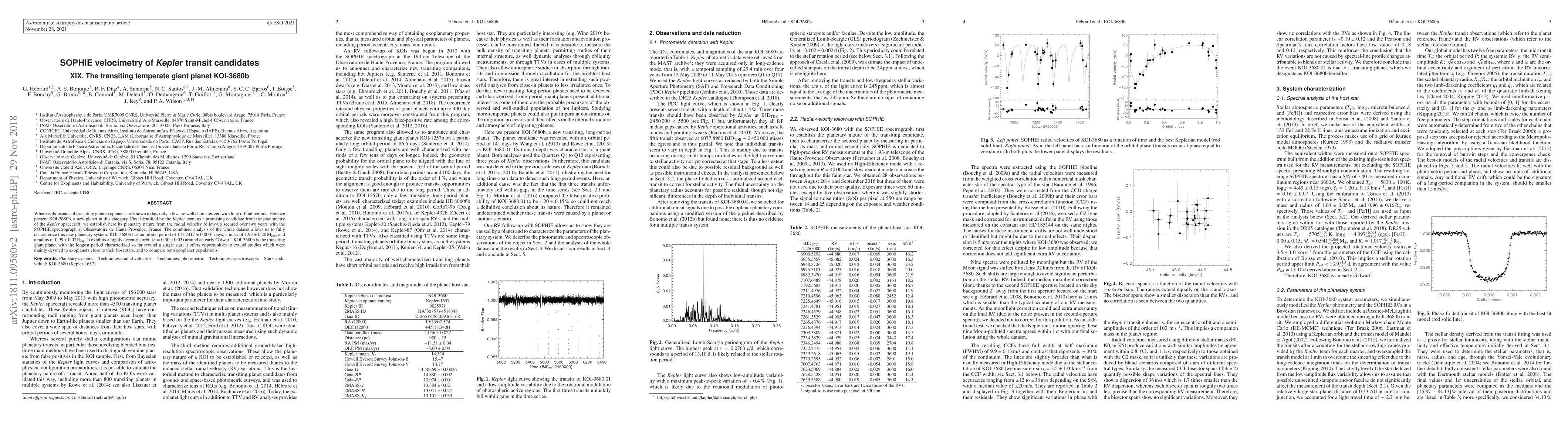 Whereas thousands of transiting giant exoplanets are known today, only a few are well characterized with long orbital periods. Here we present KOI-3680b, a new planet in this category. First identified by the Kepler team as a promising candidate from the photometry of the Kepler spacecraft, we establish here its planetary nature from the radial velocity follow-up secured over two years with the SOPHIE spectrograph at Observatoire de Haute-Provence, France. The combined analysis of the whole dataset allows us to fully characterize this new planetary system. KOI-3680b has an orbital period of 141.2417 +/- 0.0001 days, a mass of 1.93 +/- 0.20 M_Jup, and a radius of 0.99 +/- 0.07 R_Jup. It exhibits a highly eccentric orbit (e = 0.50 +/- 0.03) around an early G dwarf. KOI-3680b is the transiting giant planet with the longest period characterized so far around a single star; it offers opportunities to extend studies which were mainly devoted to exoplanets close to their host stars, and to compare both exoplanet populations.