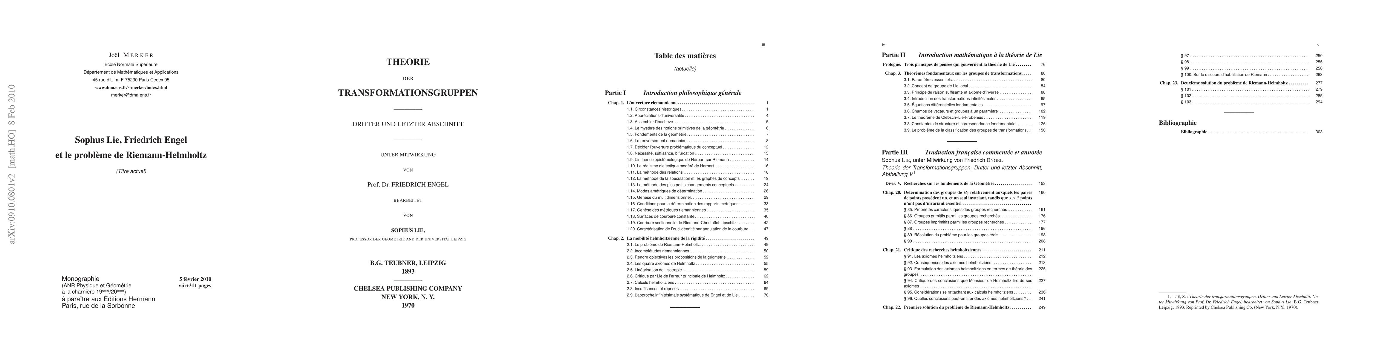 A focused modernization of Sophus Lie's brilliant writings about the foundations of geometry that every contemporary geometer should have at least once a look at. Translated, updated, commented.