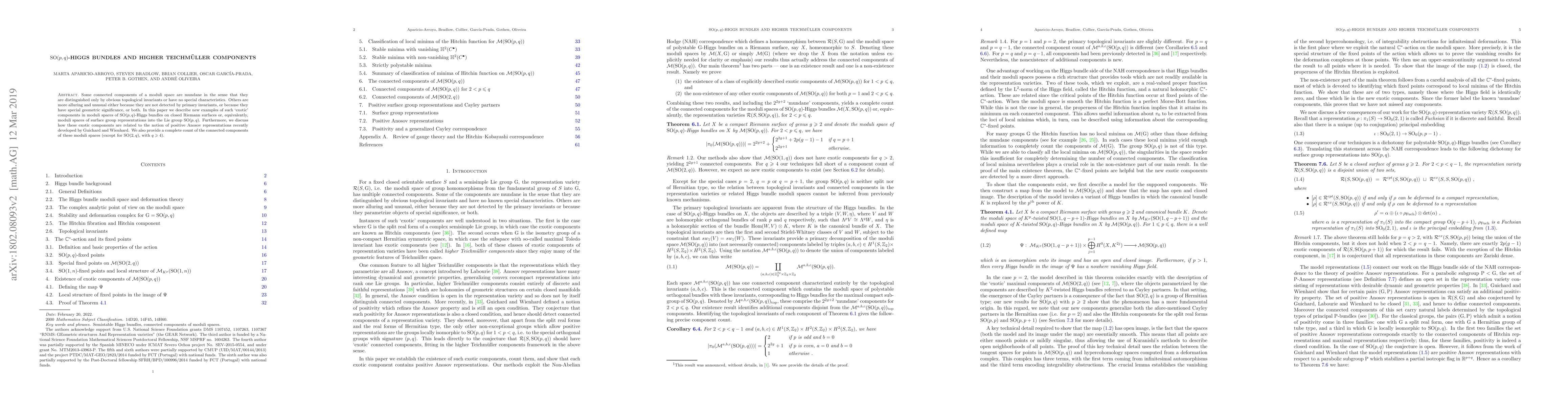 This paper explores new exotic components in moduli spaces of SO(p,q)-Higgs bundles on closed Riemann surfaces, revealing their special geometric significance and connection to positive Anosov representations. It also provides a complete count of the connected components of these moduli spaces, except for SO(2,q) with q > 3.