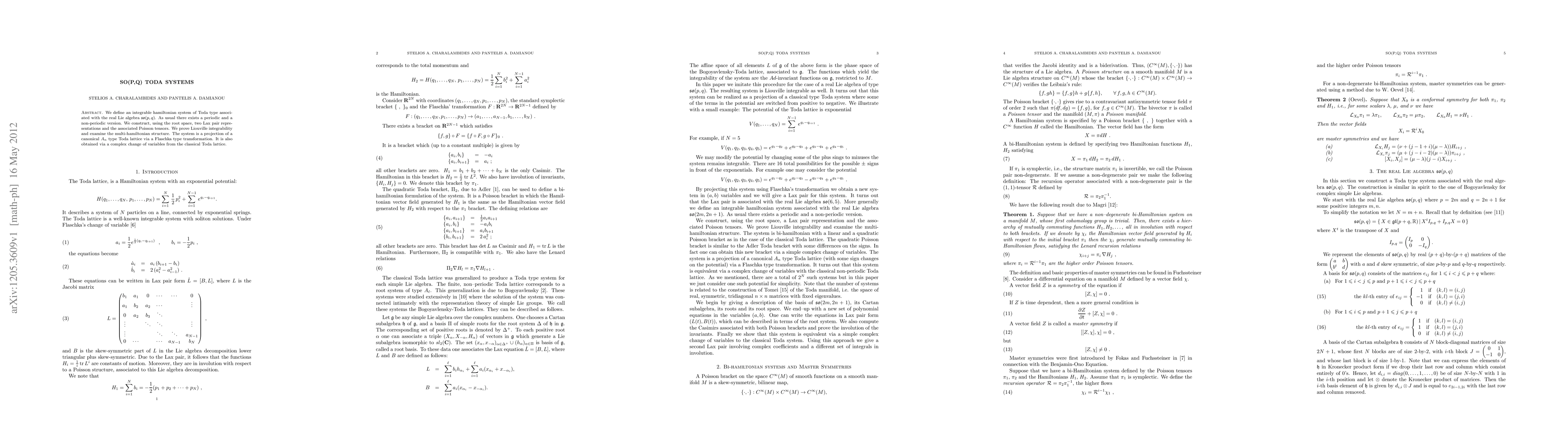We define an integrable hamiltonian system of Toda type associated with the real Lie algebra $\so{p}{q}$. As usual there exists a periodic and a non-periodic version. We construct, using the root space, two Lax pair representations and the associated Poisson tensors. We prove Liouville integrability and examine the multi-hamiltonian structure. The system is a projection of a canonical $A_n$ type Toda lattice via a Flaschka type transformation. It is also obtained via a complex change of variables from the classical Toda lattice.