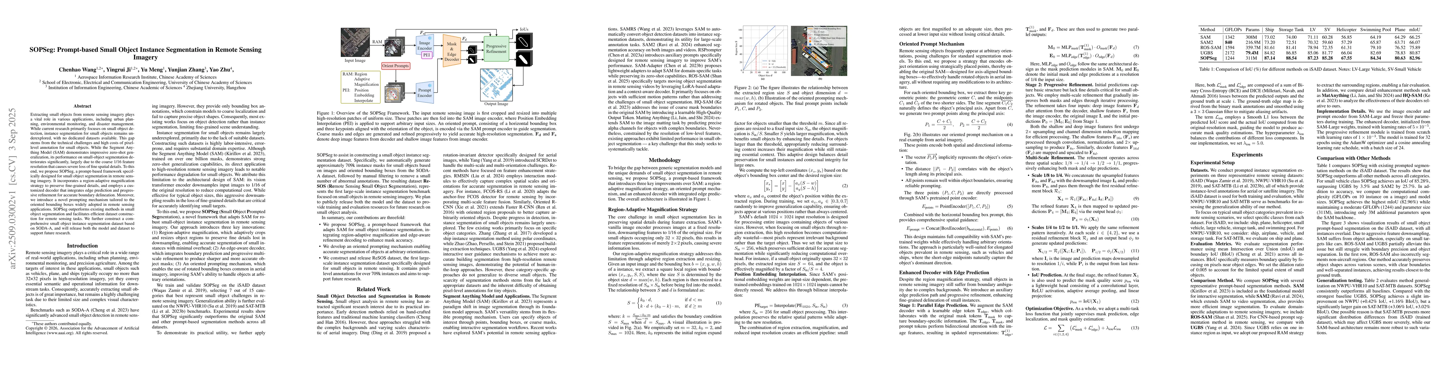 Extracting small objects from remote sensing imagery plays a vital role in various applications, including urban planning, environmental monitoring, and disaster management. While current research primarily focuses on small object detection, instance segmentation for small objects remains underexplored, with no dedicated datasets available. This gap stems from the technical challenges and high costs of pixel-level annotation for small objects. While the Segment Anything Model (SAM) demonstrates impressive zero-shot generalization, its performance on small-object segmentation deteriorates significantly, largely due to the coarse 1/16 feature resolution that causes severe loss of fine spatial details. To this end, we propose SOPSeg, a prompt-based framework specifically designed for small object segmentation in remote sensing imagery. It incorporates a region-adaptive magnification strategy to preserve fine-grained details, and employs a customized decoder that integrates edge prediction and progressive refinement for accurate boundary delineation. Moreover, we introduce a novel prompting mechanism tailored to the oriented bounding boxes widely adopted in remote sensing applications. SOPSeg outperforms existing methods in small object segmentation and facilitates efficient dataset construction for remote sensing tasks. We further construct a comprehensive small object instance segmentation dataset based on SODA-A, and will release both the model and dataset to support future research.