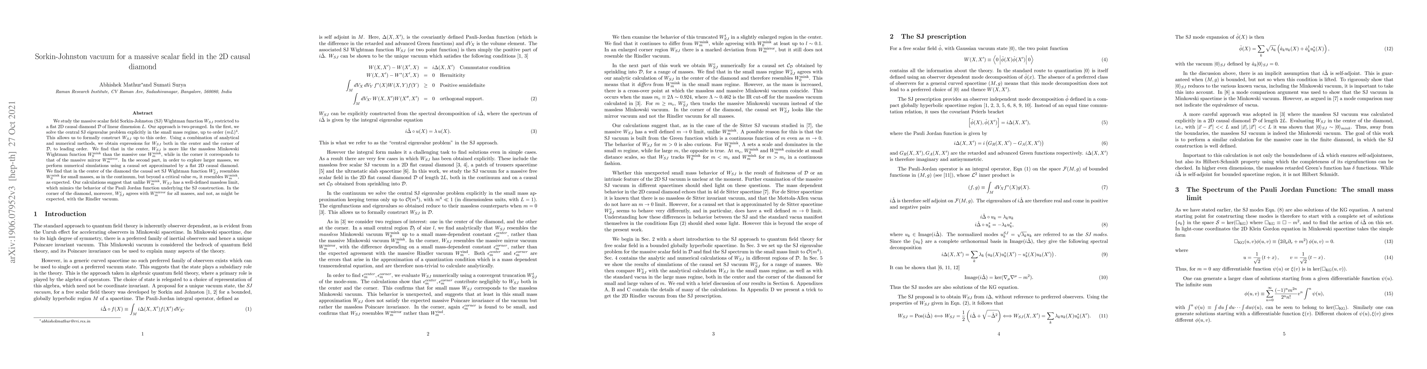 Researchers studied a massive scalar field in 2D space, finding that its Wightman function behaves like the massless Minkowski vacuum for small masses, but resembles the massive Minkowski vacuum at larger masses.