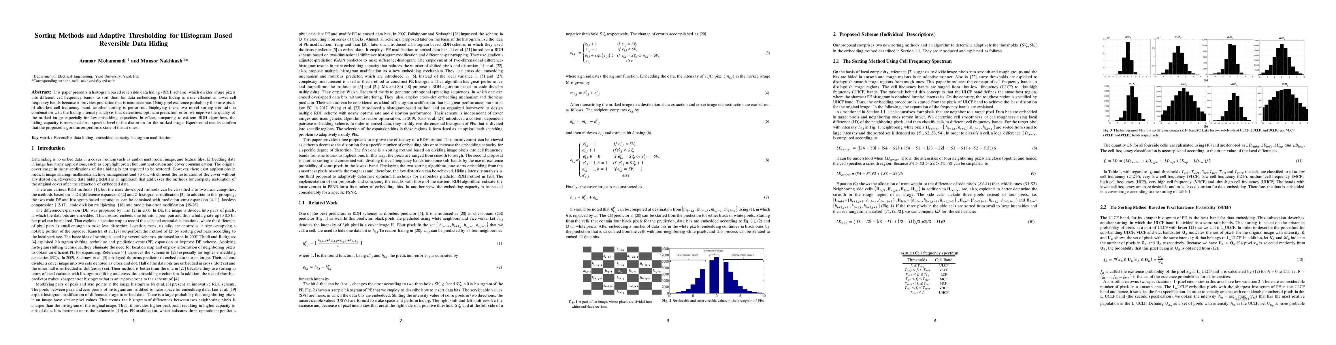 This paper introduces a novel histogram-based reversible data hiding scheme that employs two sorting methods and adaptive thresholding to enhance data embedding efficiency and image quality, achieving higher hiding capacity compared to existing algorithms. Experimental results demonstrate superior performance over state-of-the-art reversible data hiding methods.