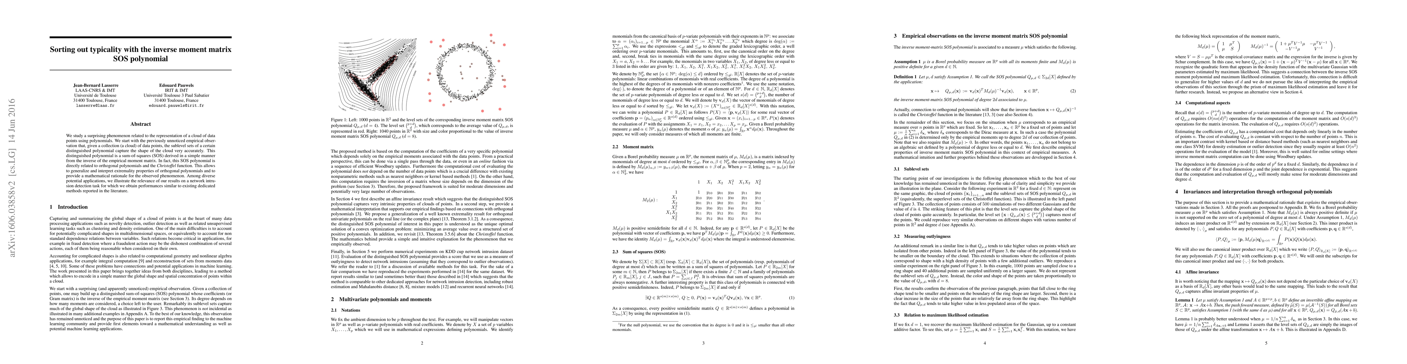 We study a surprising phenomenon related to the representation of a cloud of data points using polynomials. We start with the previously unnoticed empirical observation that, given a collection (a cloud) of data points, the sublevel sets of a certain distinguished polynomial capture the shape of the cloud very accurately. This distinguished polynomial is a sum-of-squares (SOS) derived in a simple manner from the inverse of the empirical moment matrix. In fact, this SOS polynomial is directly related to orthogonal polynomials and the Christoffel function. This allows to generalize and interpret extremality properties of orthogonal polynomials and to provide a mathematical rationale for the observed phenomenon. Among diverse potential applications, we illustrate the relevance of our results on a network intrusion detection task for which we obtain performances similar to existing dedicated methods reported in the literature.