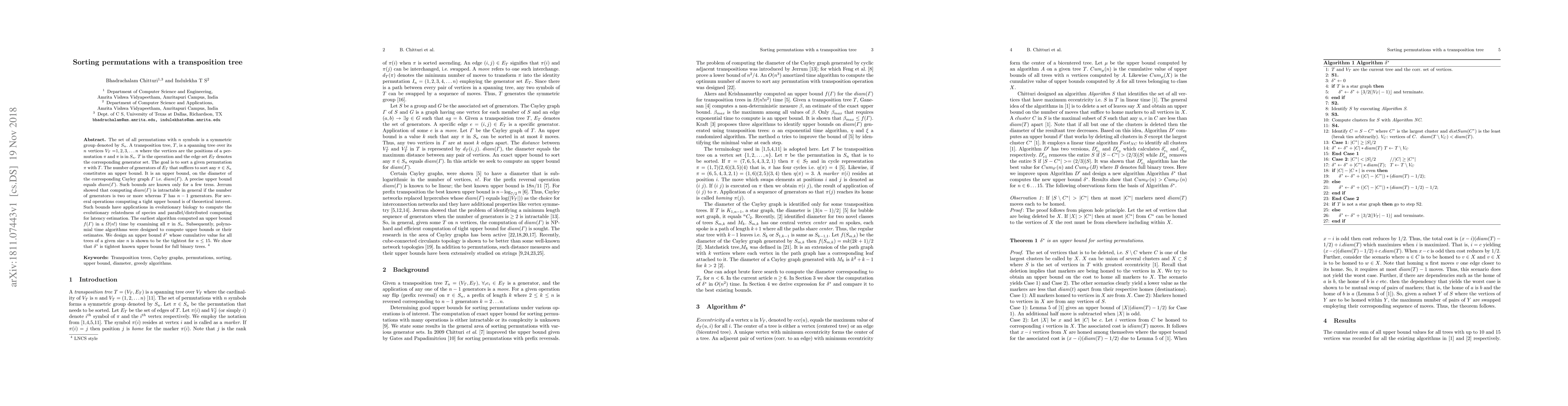 Researchers designed an upper bound for sorting permutations using a transposition tree, finding it to be tightest for n <= 15 and full binary trees, with potential applications in evolutionary biology and parallel computing.