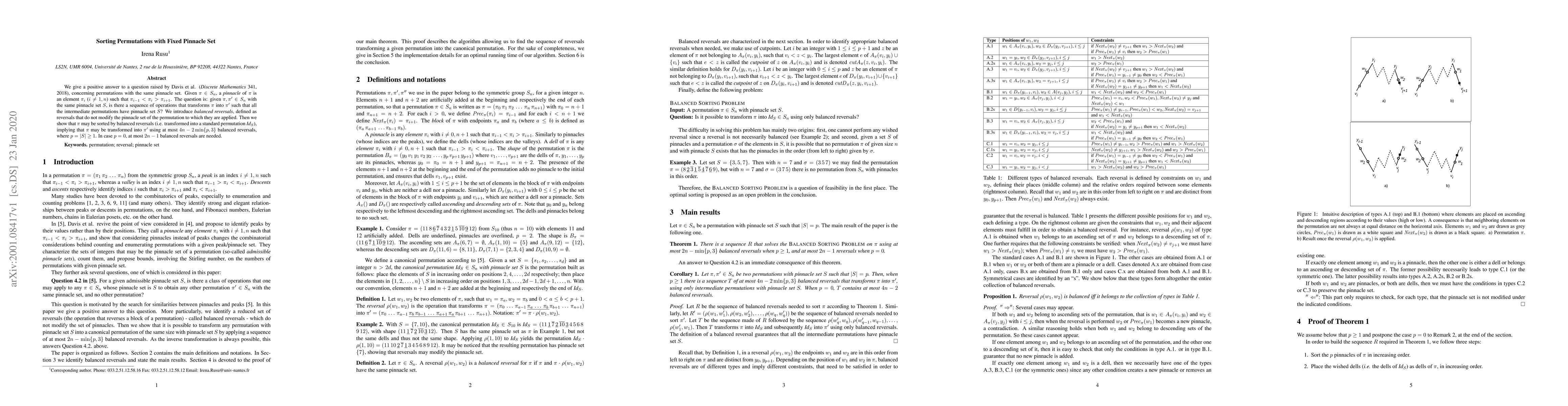 We give a positive answer to a question raised by Davis et al. ({\em Discrete Mathematics} 341, 2018), concerning permutations with the same pinnacle set. Given $\pi\in S_n$, a {\em pinnacle} of $\pi$ is an element $\pi_i$ ($i\neq 1,n$) such that $\pi_{i-1}<\pi_i>\pi_{i+1}$. The question is: given $\pi,\pi'\in S_n$ with the same pinnacle set $S$, is there a sequence of operations that transforms $\pi$ into $\pi'$ such that all the intermediate permutations have pinnacle set $S$? We introduce {\em balanced reversals}, defined as reversals that do not modify the pinnacle set of the permutation to which they are applied. Then we show that $\pi$ may be sorted by balanced reversals (i.e. transformed into a standard permutation $\Id_S$), implying that $\pi$ may be transformed into $\pi'$ using at most $4n-2\min\{p,3\}$ balanced reversals, where $p=|S|\geq 1$. In case $p=0$, at most $2n-1$ balanced reversals are needed.