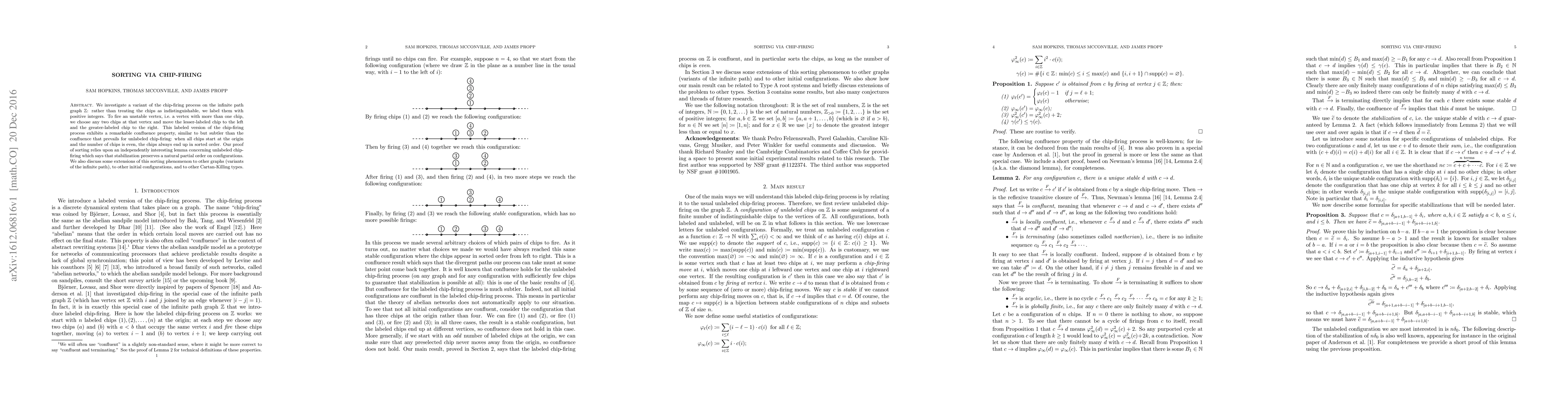 This paper explores a labeled version of the chip-firing process on the infinite path graph, where firing results in sorting if the number of chips is even. The proof leverages a lemma about unlabeled chip-firing that preserves a natural partial order, and it extends the sorting phenomenon to other graph variants and initial configurations.