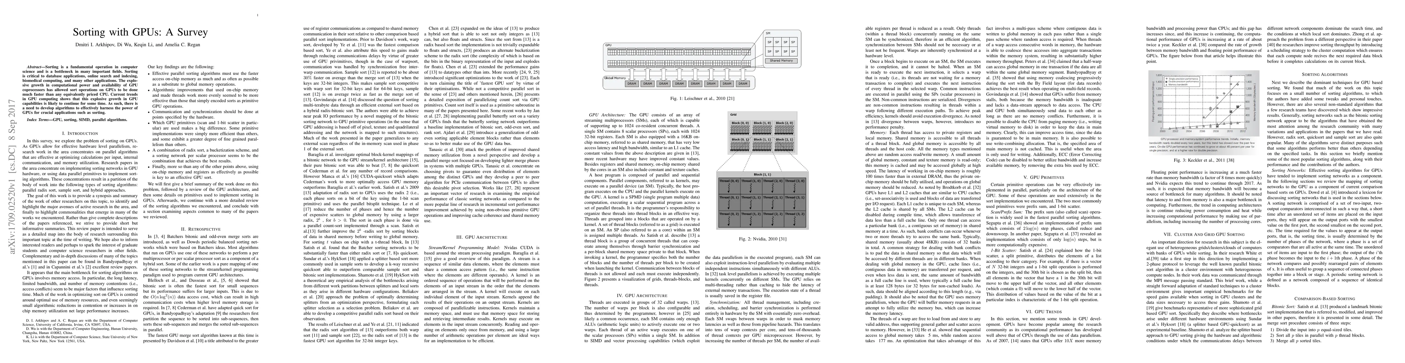 Sorting is a fundamental operation in computer science and is a bottleneck in many important fields. Sorting is critical to database applications, online search and indexing,biomedical computing, and many other applications. The explosive growth in computational power and availability of GPU coprocessors has allowed sort operations on GPUs to be done much faster than any equivalently priced CPU. Current trends in GPU computing shows that this explosive growth in GPU capabilities is likely to continue for some time. As such, there is a need to develop algorithms to effectively harness the power of GPUs for crucial applications such as sorting.
