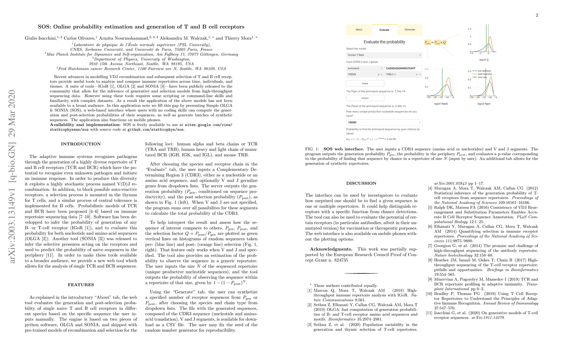 This paper introduces SOS, a web-based interface that simplifies the use of IGoR, OLGA, and SONIA tools for estimating and generating T and B cell receptor sequences without requiring coding skills. SOS enables users to compute generation and selection probabilities and generate synthetic sequences, broadening accessibility to these advanced immune repertoire analysis tools.