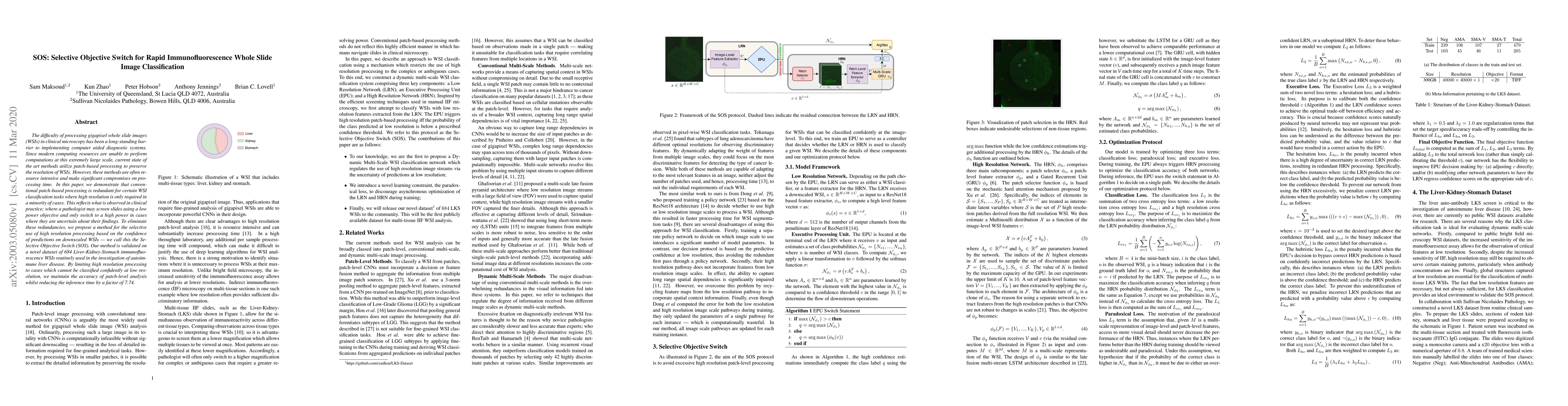 The difficulty of processing gigapixel whole slide images (WSIs) in clinical microscopy has been a long-standing barrier to implementing computer aided diagnostic systems. Since modern computing resources are unable to perform computations at this extremely large scale, current state of the art methods utilize patch-based processing to preserve the resolution of WSIs. However, these methods are often resource intensive and make significant compromises on processing time. In this paper, we demonstrate that conventional patch-based processing is redundant for certain WSI classification tasks where high resolution is only required in a minority of cases. This reflects what is observed in clinical practice; where a pathologist may screen slides using a low power objective and only switch to a high power in cases where they are uncertain about their findings. To eliminate these redundancies, we propose a method for the selective use of high resolution processing based on the confidence of predictions on downscaled WSIs --- we call this the Selective Objective Switch (SOS). Our method is validated on a novel dataset of 684 Liver-Kidney-Stomach immunofluorescence WSIs routinely used in the investigation of autoimmune liver disease. By limiting high resolution processing to cases which cannot be classified confidently at low resolution, we maintain the accuracy of patch-level analysis whilst reducing the inference time by a factor of 7.74.