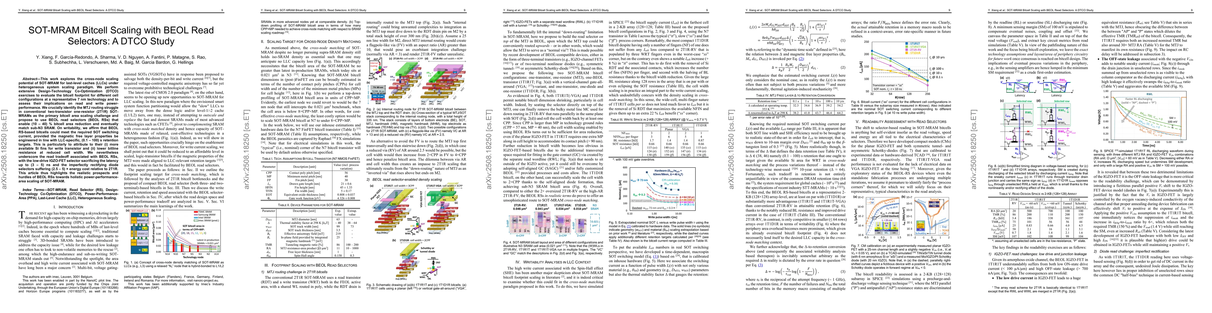 This work explores the cross-node scaling potential of SOT-MRAM for last-level caches (LLCs) under heterogeneous system scaling paradigm. We perform extensive Design-Technology Co-Optimization (DTCO) exercises to evaluate the bitcell footprint for different cell configurations at a representative 7 nm technology and to assess their implications on read and write power-performance. We crucially identify the MTJ routing struggle in conventional two-transistor one-resistor (2T1R) SOT-MRAMs as the primary bitcell area scaling challenge and propose to use BEOL read selectors (BEOL RSs) that enable (10 -- 40) % bitcell area reduction and eventually match sub-N3 SRAM. On writability, we affirm that BEOL RS-based bitcells could meet the required SOT switching current, provided the magnetic free layer properties be engineered in line with LLC-specific, (0.1 -- 100) s retention targets. This is particularly to attribute to their (i) more available Si fins for write transistor and (ii) lower bitline resistance at reduced cell width. We nevertheless underscore the read tradeoff associated with BEOL RSs, with the low-drive IGZO-FET selector sacrificing the latency up to (3 -- 5) ns and the imperfectly rectifying diode selectors suffering (2.5 -- 5)$\times$ energy cost relative to 2T1R. This article thus highlights the realistic prospects and hurdles of BEOL RSs towards holistic power-performance-area scaling of SOT-MRAM.