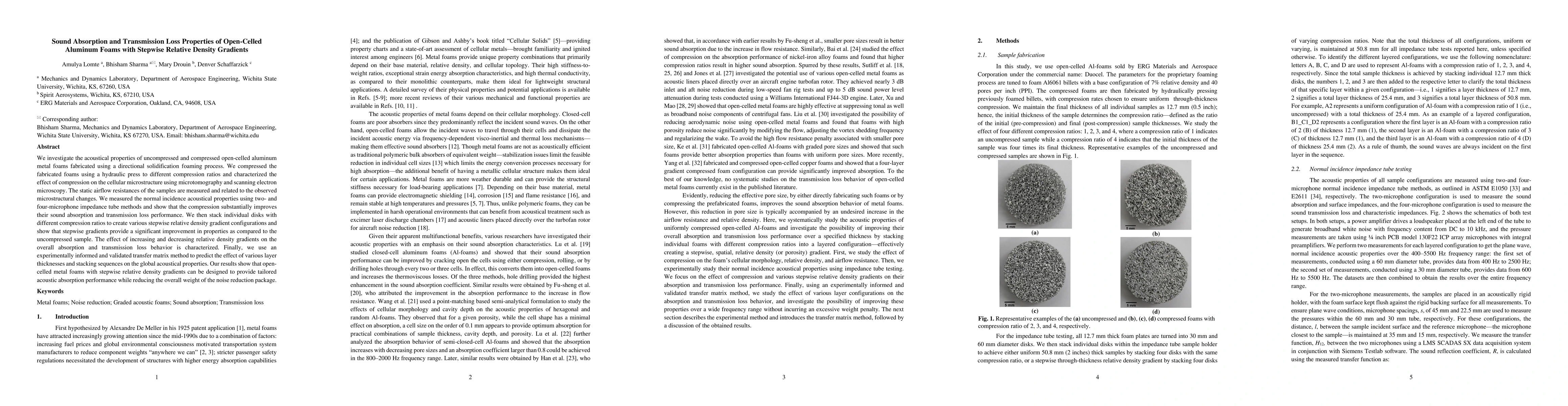 This study explores the acoustical properties of open-celled aluminum foams with varying compression ratios and stepwise relative density gradients, demonstrating improved sound absorption and transmission loss. The research shows that stepwise gradient configurations significantly enhance performance compared to uncompressed samples, and a validated transfer matrix method predicts the effects of different layer thicknesses and sequences.