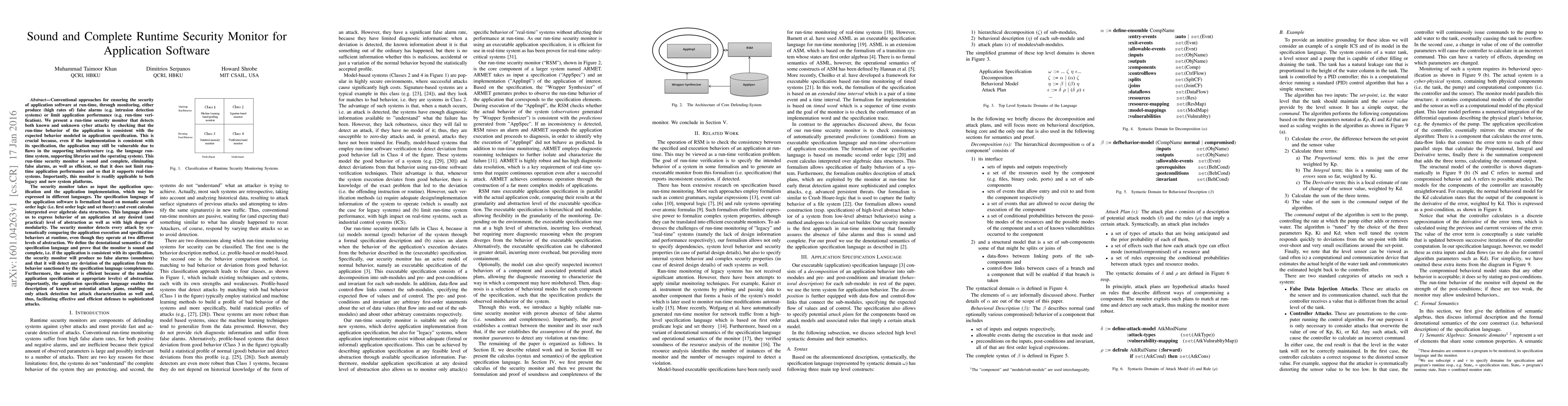 This paper introduces a sound and complete runtime security monitor for application software that detects both known and unknown cyber attacks by comparing application behavior against a specified model. The monitor is efficient and does not compromise application performance, ensuring it supports real-time systems.