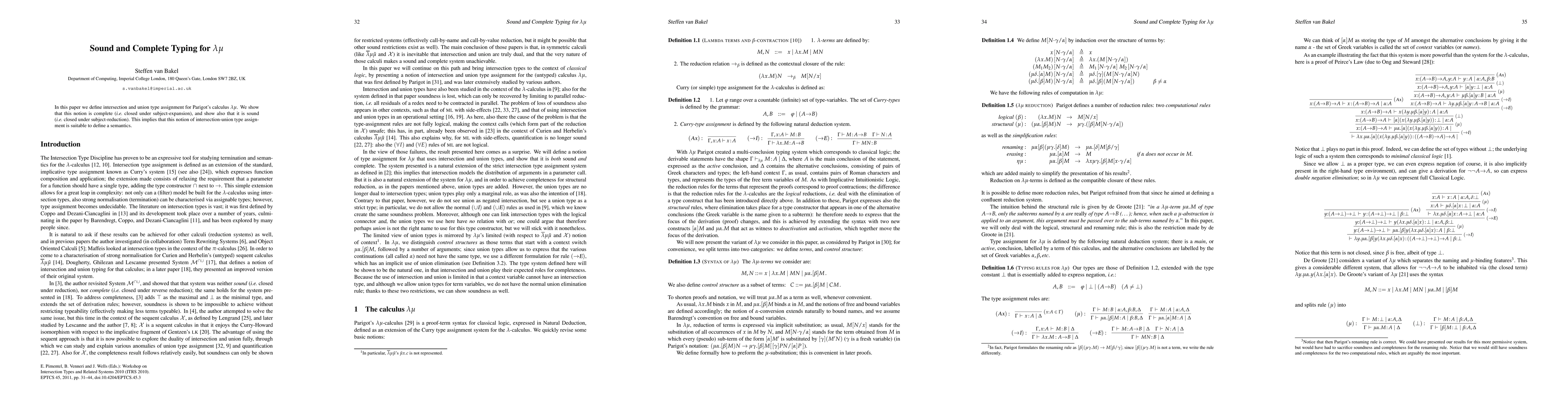 In this paper we define intersection and union type assignment for Parigot's calculus lambda-mu. We show that this notion is complete (i.e. closed under subject-expansion), and show also that it is sound (i.e. closed under subject-reduction). This implies that this notion of intersection-union type assignment is suitable to define a semantics.