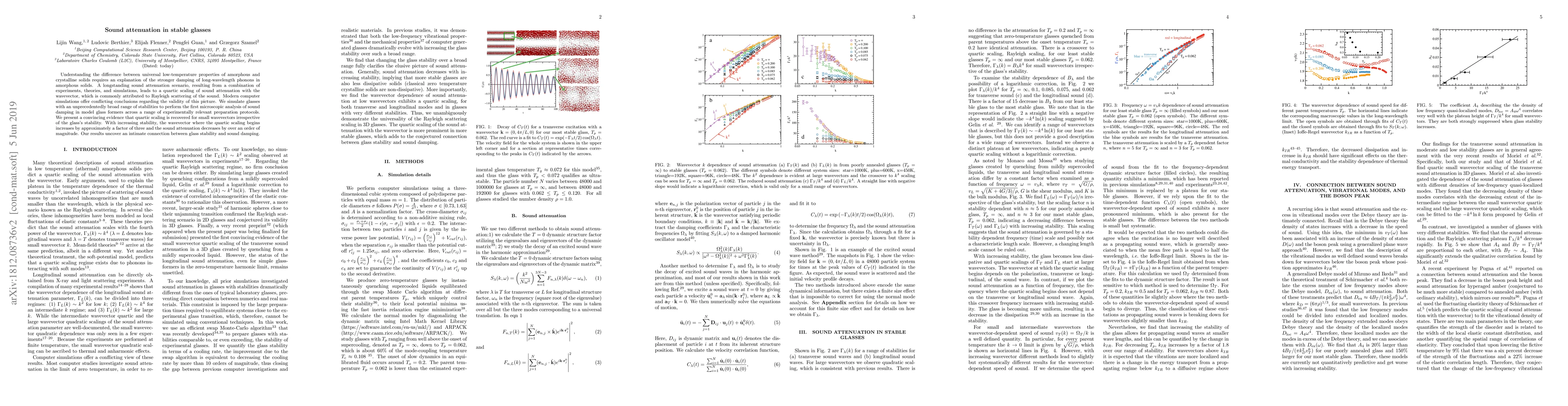 This paper investigates sound attenuation in stable glasses, revealing that quartic scaling of sound attenuation with wavevector is consistent across various glass stabilities, though the onset wavevector and attenuation magnitude vary with stability, highlighting a strong link between glass stability and sound damping.
