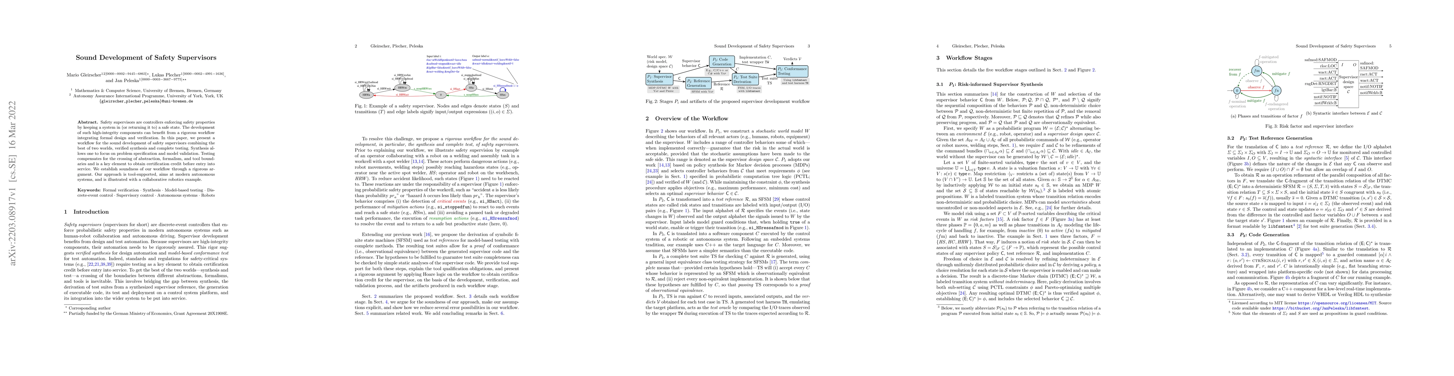 This paper proposes a rigorous workflow for developing safety supervisors using verified synthesis and complete testing, ensuring soundness through formal argumentation. The approach is tool-supported and demonstrated through a collaborative robotics example for modern autonomous systems.