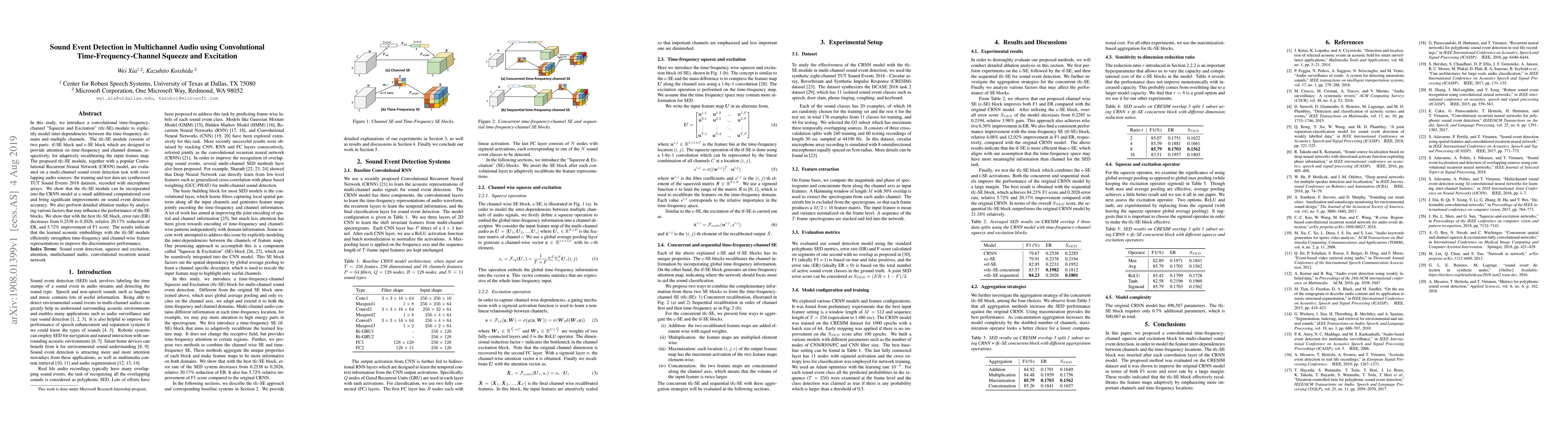 This paper proposes a convolutional time-frequency-channel Squeeze and Excitation (tfc-SE) module to enhance feature representations in multichannel audio for sound event detection. The tfc-SE module, integrated with a CRNN model, significantly improves detection accuracy, reducing error rate by 20.17% and boosting the F1 score by 5.72%.