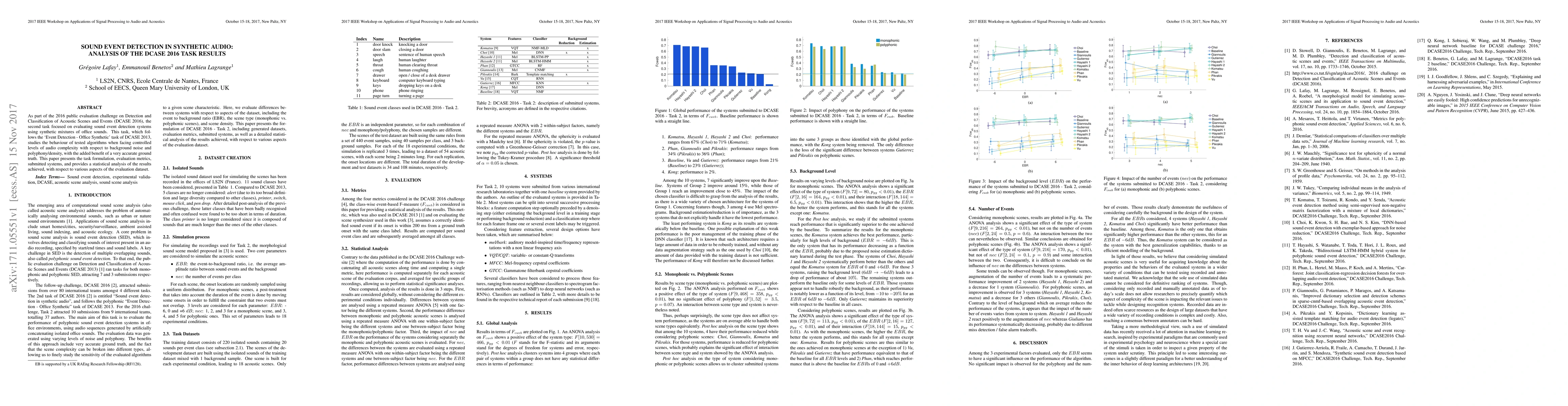 As part of the 2016 public evaluation challenge on Detection and Classification of Acoustic Scenes and Events (DCASE 2016), the second task focused on evaluating sound event detection systems using synthetic mixtures of office sounds. This task, which follows the `Event Detection - Office Synthetic' task of DCASE 2013, studies the behaviour of tested algorithms when facing controlled levels of audio complexity with respect to background noise and polyphony/density, with the added benefit of a very accurate ground truth. This paper presents the task formulation, evaluation metrics, submitted systems, and provides a statistical analysis of the results achieved, with respect to various aspects of the evaluation dataset.