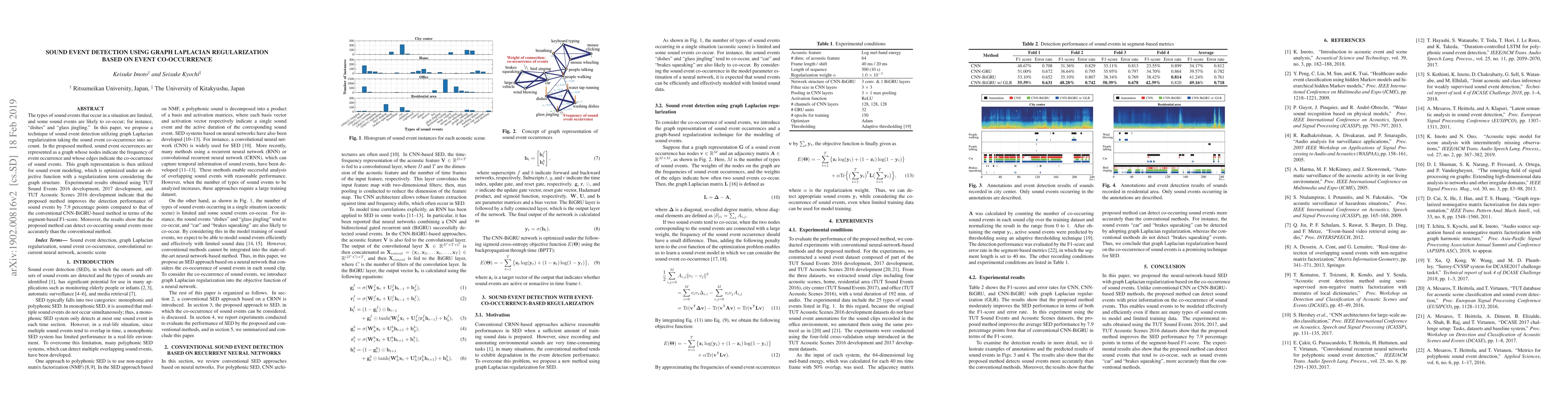 This paper proposes a sound event detection technique using graph Laplacian regularization that considers sound event co-occurrences. The method represents sound events as a graph, optimizing its model with a regularization term that enhances detection performance, achieving a 7.9% improvement in F1-score compared to conventional CNN-BiGRU methods.