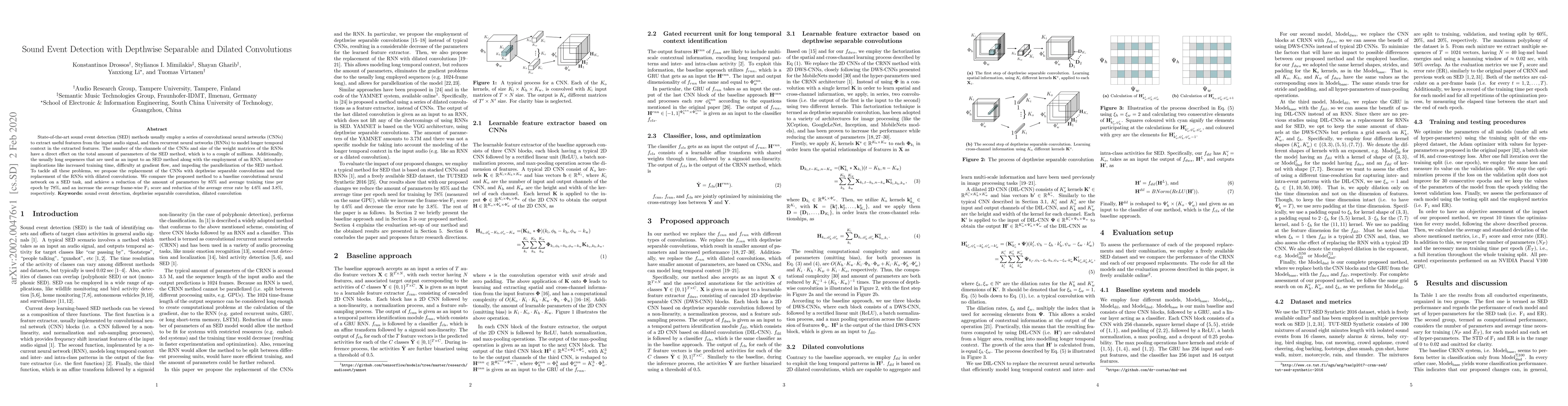 This paper proposes a sound event detection method using depthwise separable convolutions and dilated convolutions to replace traditional CNNs and RNNs, achieving an 85% reduction in parameters and a 78% decrease in training time while improving the frame-wise F1 score and reducing error rates.