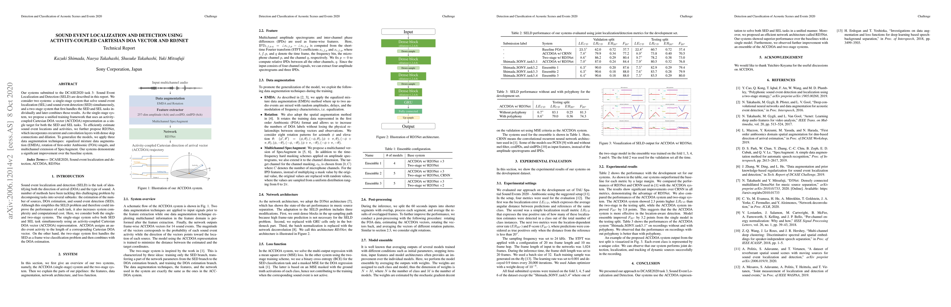 Our systems submitted to the DCASE2020 task~3: Sound Event Localization and Detection (SELD) are described in this report. We consider two systems: a single-stage system that solve sound event localization~(SEL) and sound event detection~(SED) simultaneously, and a two-stage system that first handles the SED and SEL tasks individually and later combines those results. As the single-stage system, we propose a unified training framework that uses an activity-coupled Cartesian DOA vector~(ACCDOA) representation as a single target for both the SED and SEL tasks. To efficiently estimate sound event locations and activities, we further propose RD3Net, which incorporates recurrent and convolution layers with dense skip connections and dilation. To generalize the models, we apply three data augmentation techniques: equalized mixture data augmentation~(EMDA), rotation of first-order Ambisonic~(FOA) singals, and multichannel extension of SpecAugment. Our systems demonstrate a significant improvement over the baseline system.