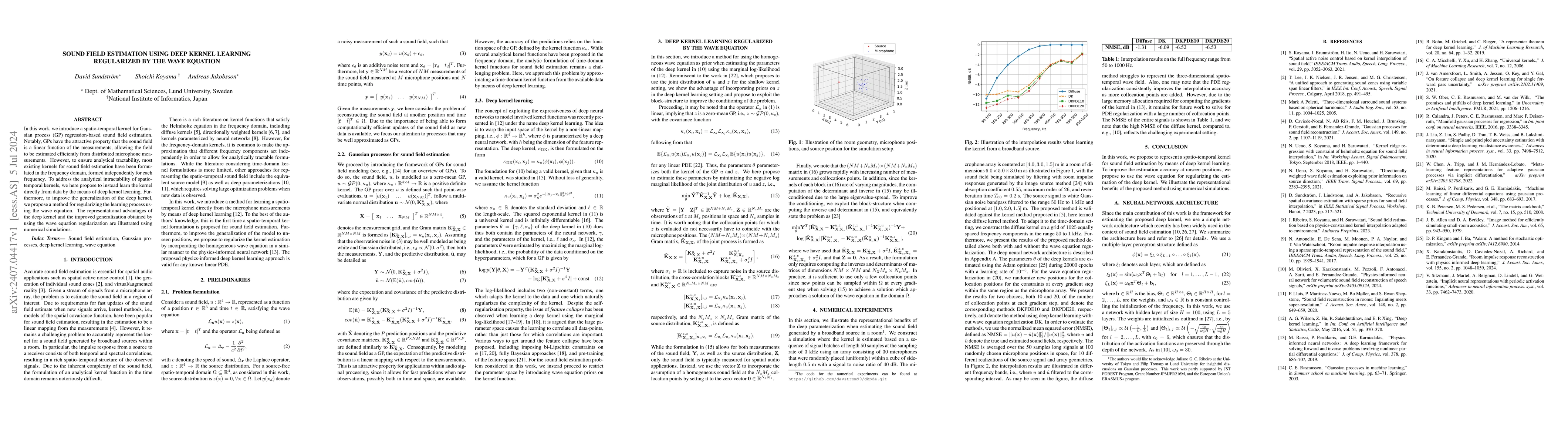 This paper proposes a deep kernel learning approach for efficient spatio-temporal sound field estimation using Gaussian process regression, regularized by the wave equation to enhance generalization. Numerical simulations demonstrate the advantages of the proposed method.