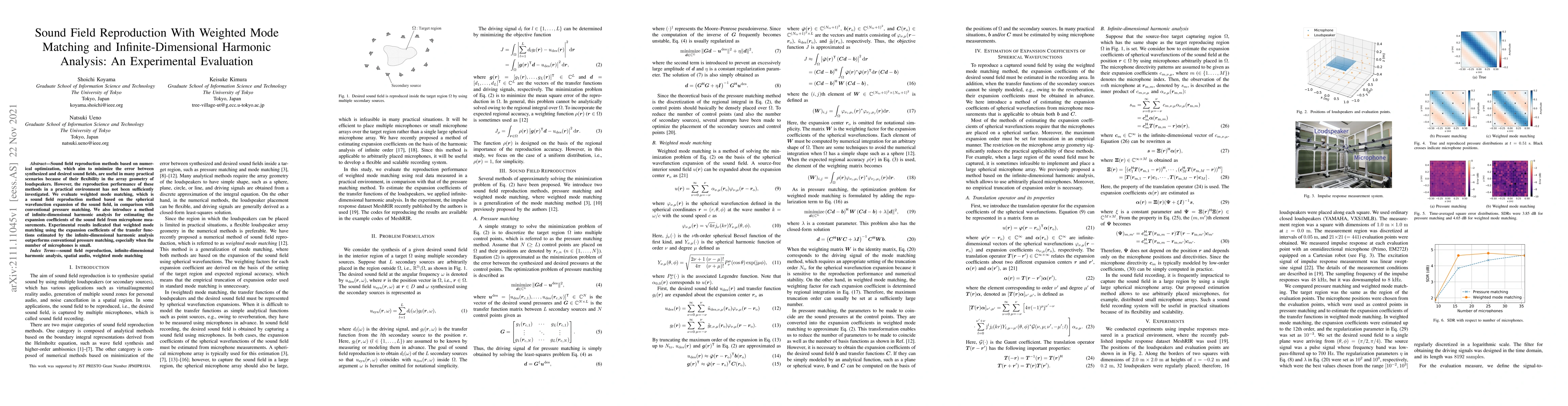 This paper evaluates weighted mode matching for sound field reproduction, demonstrating its superior performance over conventional pressure matching, especially with limited microphone data. The method employs infinite-dimensional harmonic analysis to estimate the necessary expansion coefficients, showing better results in practical environments.