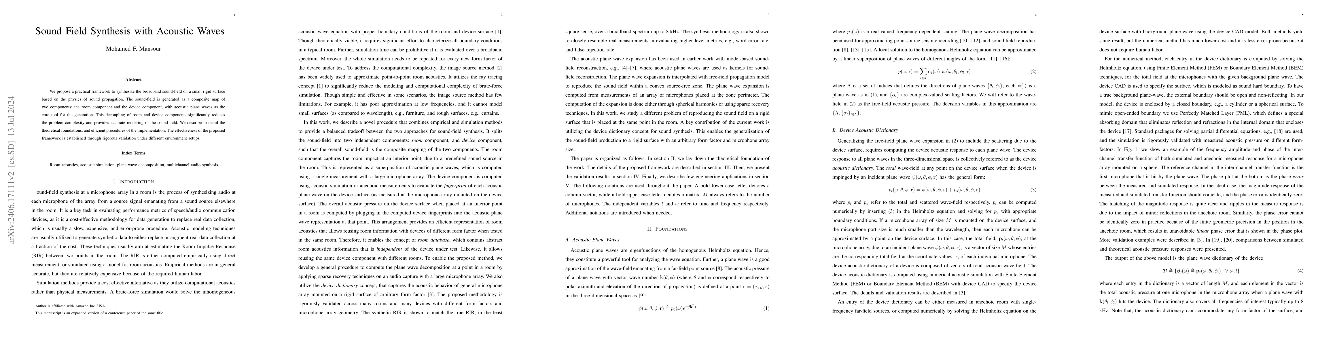 We propose a practical framework to synthesize broadband sound-field on a small rigid surface based on the physics of sound propagation. The sound-field is generated as a composite map of two components: room component and device component; with acoustic plane waves as core element. This decoupling of room and device components significantly reduces the problem complexity and provide accurate rendering of the sound-field. We describe in details the theoretical foundations, efficient procedures, and engineering applications of the proposed framework. The effectiveness of the proposed framework is established through rigorous validation under different environment setups.