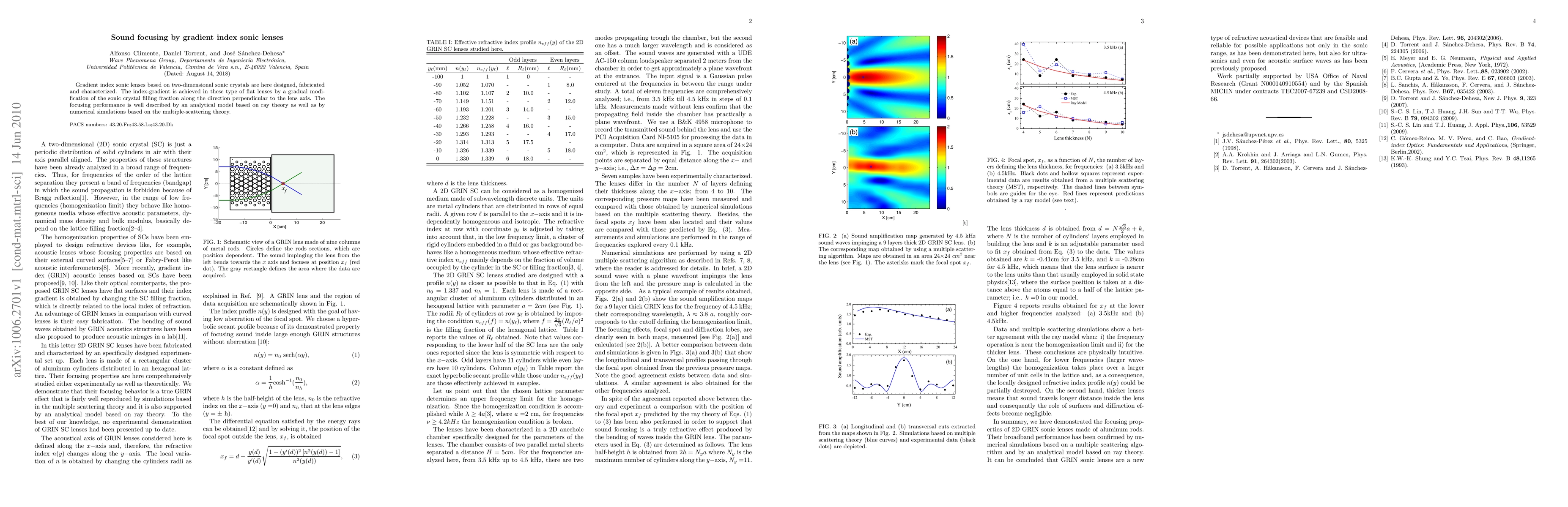 This research presents the design, creation, and analysis of gradient index sonic lenses using 2D sonic crystals. The lenses' focusing ability is effectively modeled by ray theory and confirmed by multiple-scattering theory simulations.