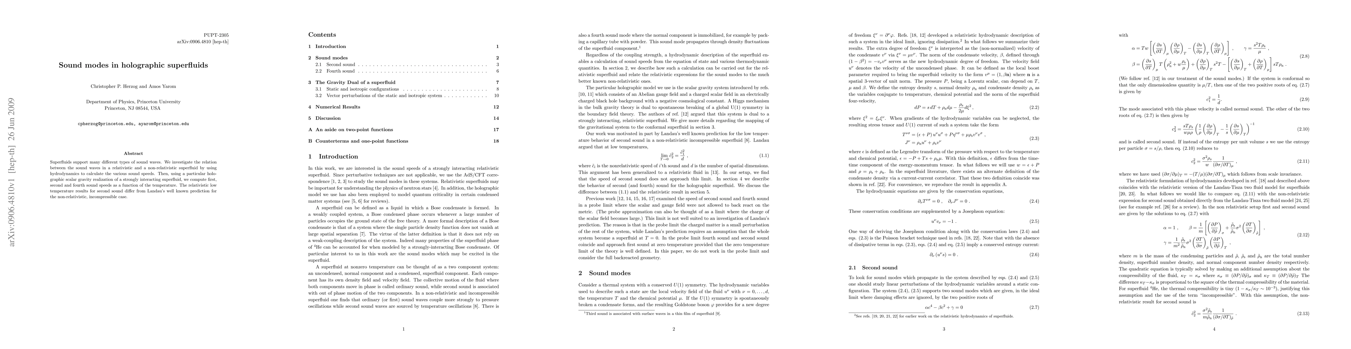 This paper investigates sound modes in holographic superfluids, comparing relativistic and non-relativistic sound speeds using hydrodynamics. It finds that the relativistic low-temperature second sound speed differs from Landau's prediction for non-relativistic superfluids.